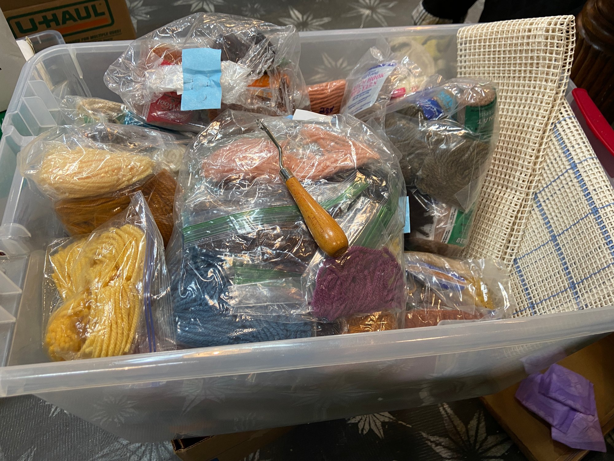 22"x16"x 14" Crate Full Of Latch Hook Supplies/tool/canvas