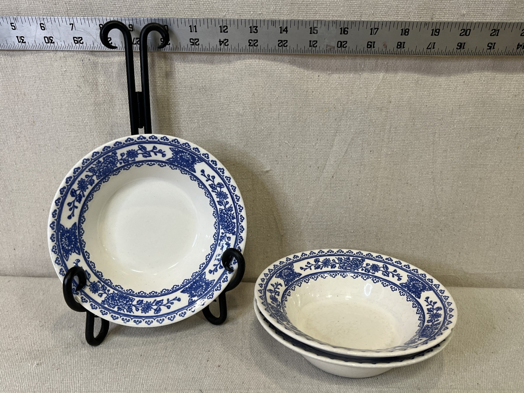 3 Vintage Blue & White 6in Bowls Made In USA