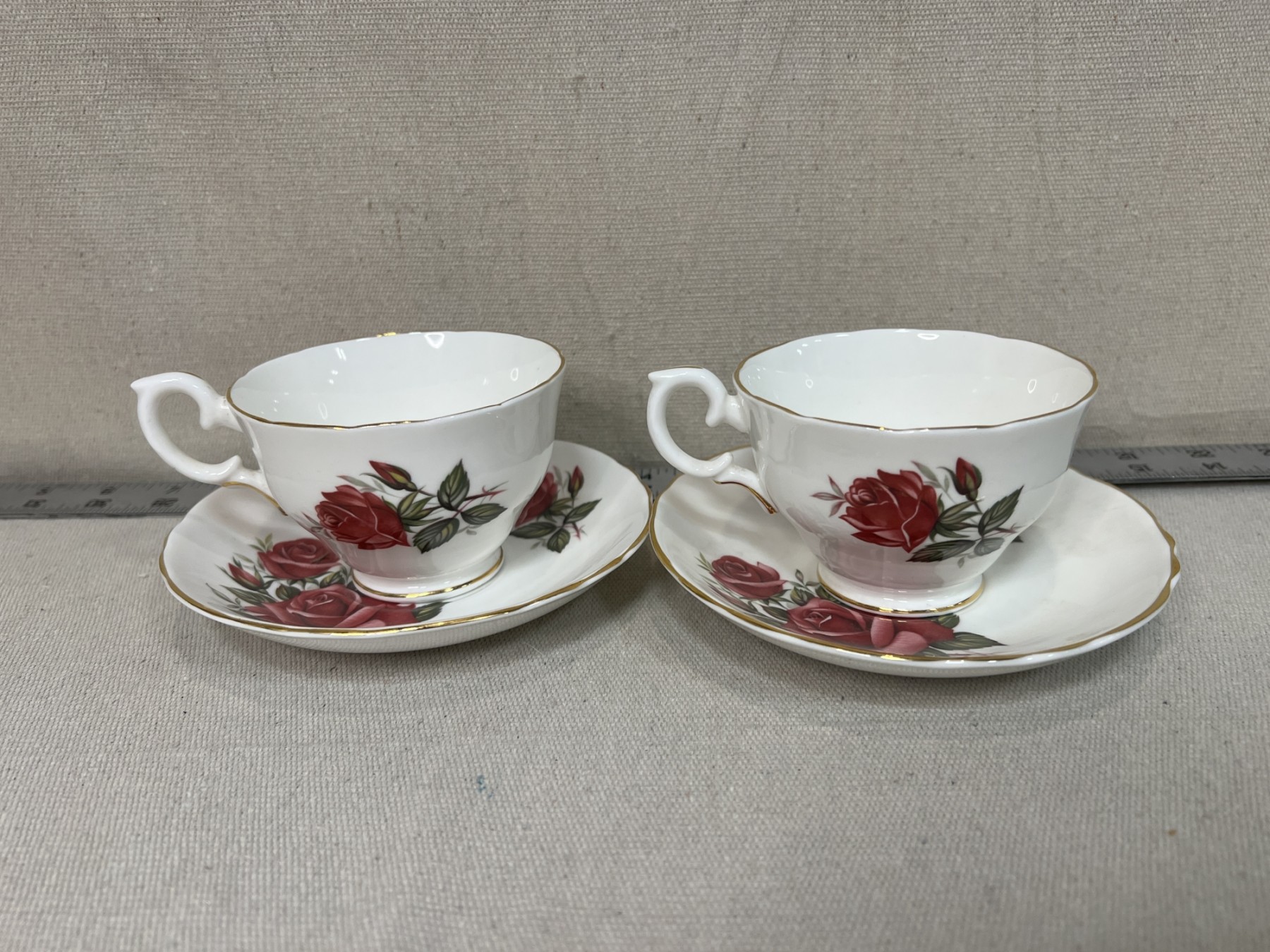 Pair Of Staffordshire Fine Bone China Teacups & Saucers