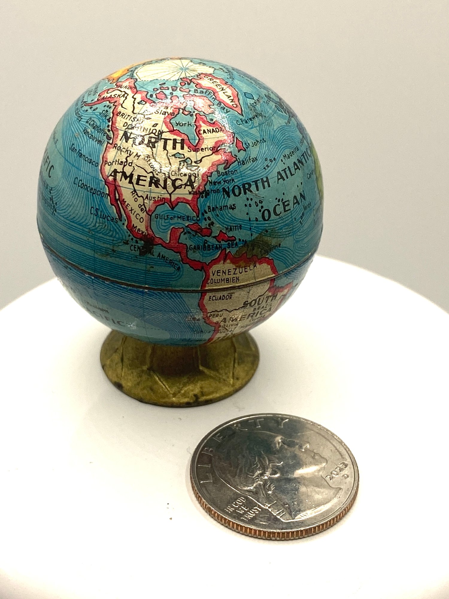 Antique Cast Iron Pencil Sharpener- Globe - Opens Up