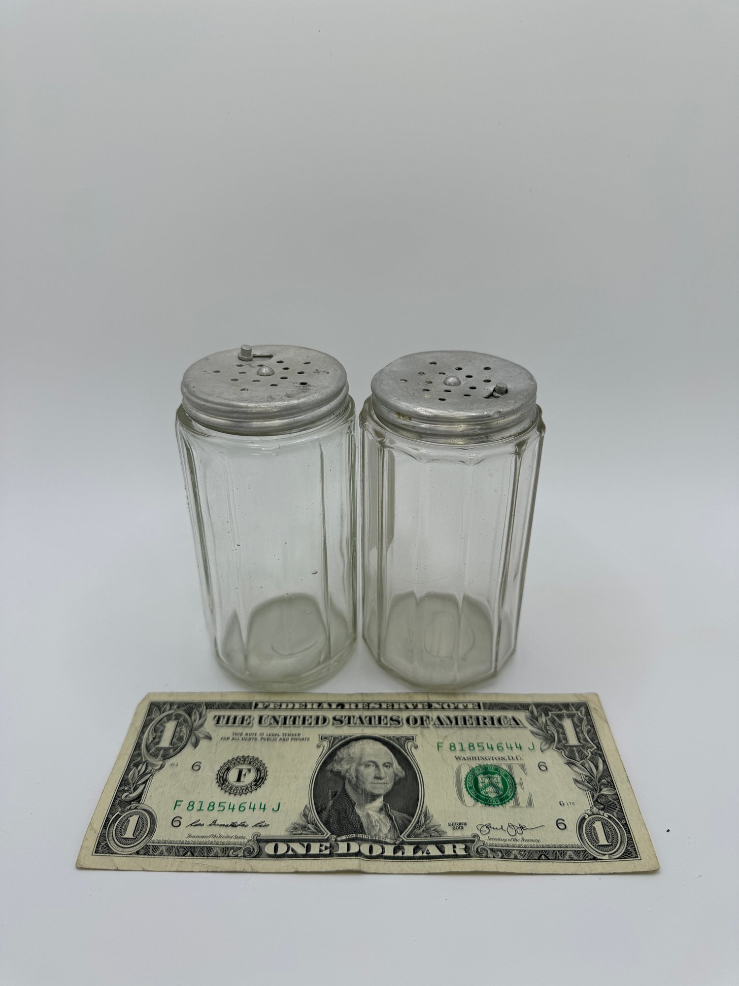 Antique Clear Ribbed Glass Hoosier Salt And Pepper Shakers