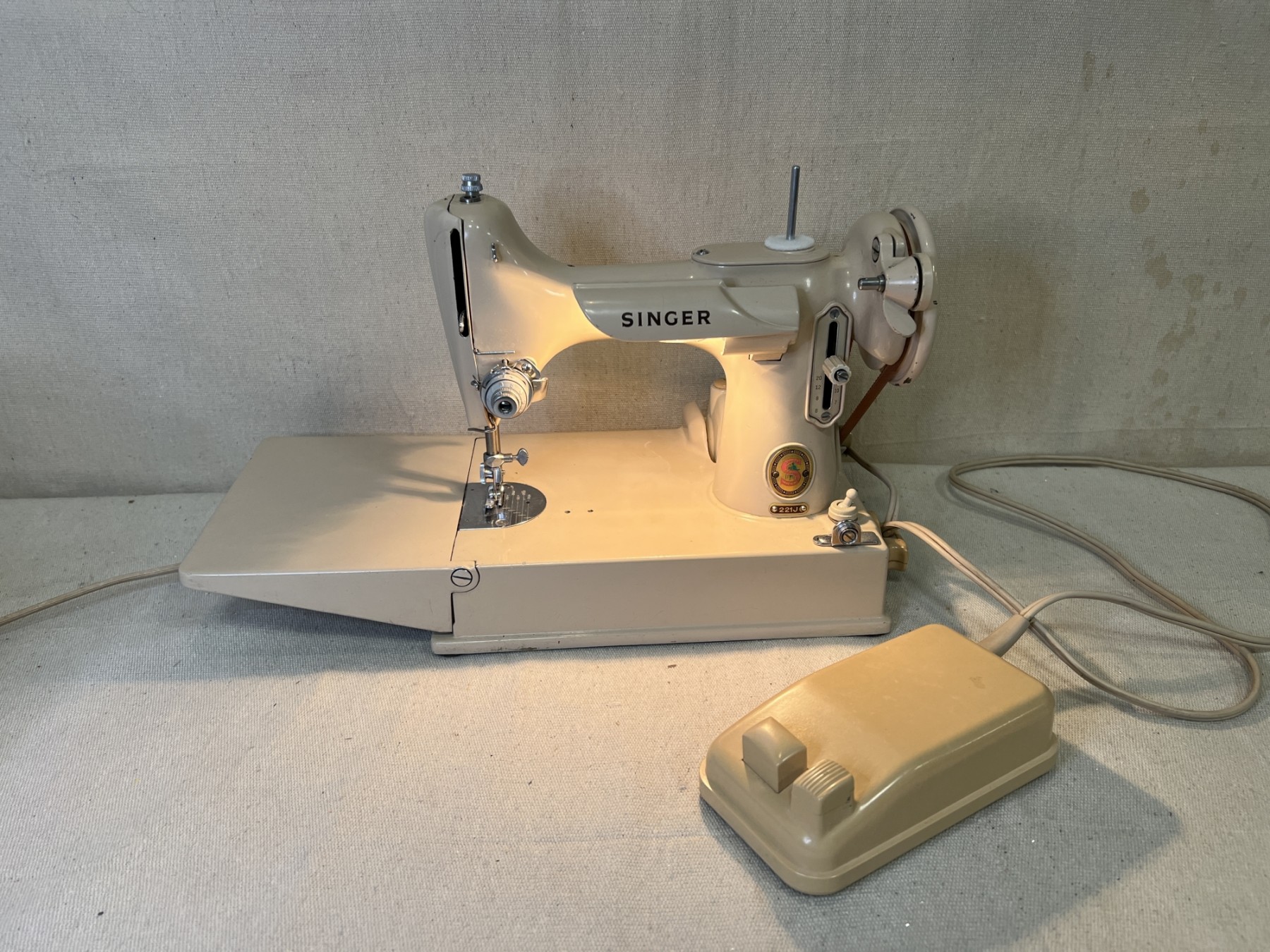 light works, pedal works, machine spins smoothly. The bobbin case that has been replaced with a piece that isn't original to the machine, it sits tight in the machine, you'd probably want a featherweight brand replacement for that. Those can be found online. other than that, it is an excellent find incredible condition!!!!