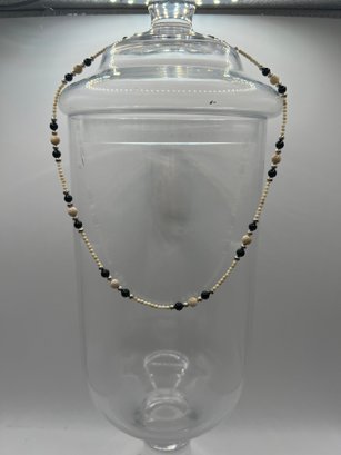 Beaded Black And White Necklace 18in