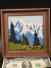 Framed Needlepoint Alpine Scene, 6 1/2 Square