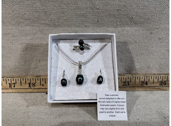 Freshwater Pearls Jewelry Set - Earrings, Necklace, Ring