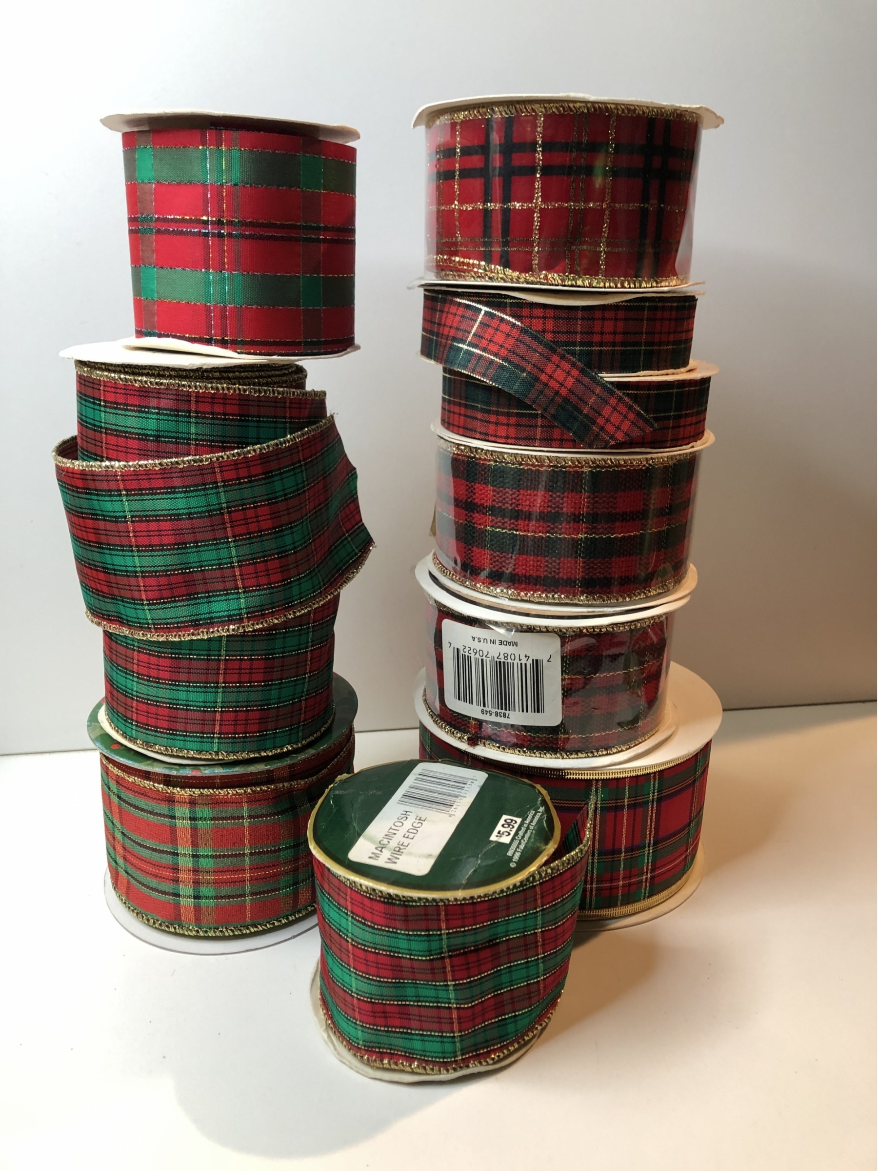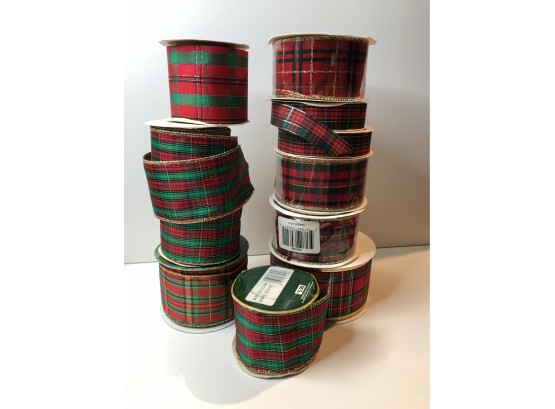 Lot Of Plaid Ribbon, Some Wire Edged, New And Small Usage