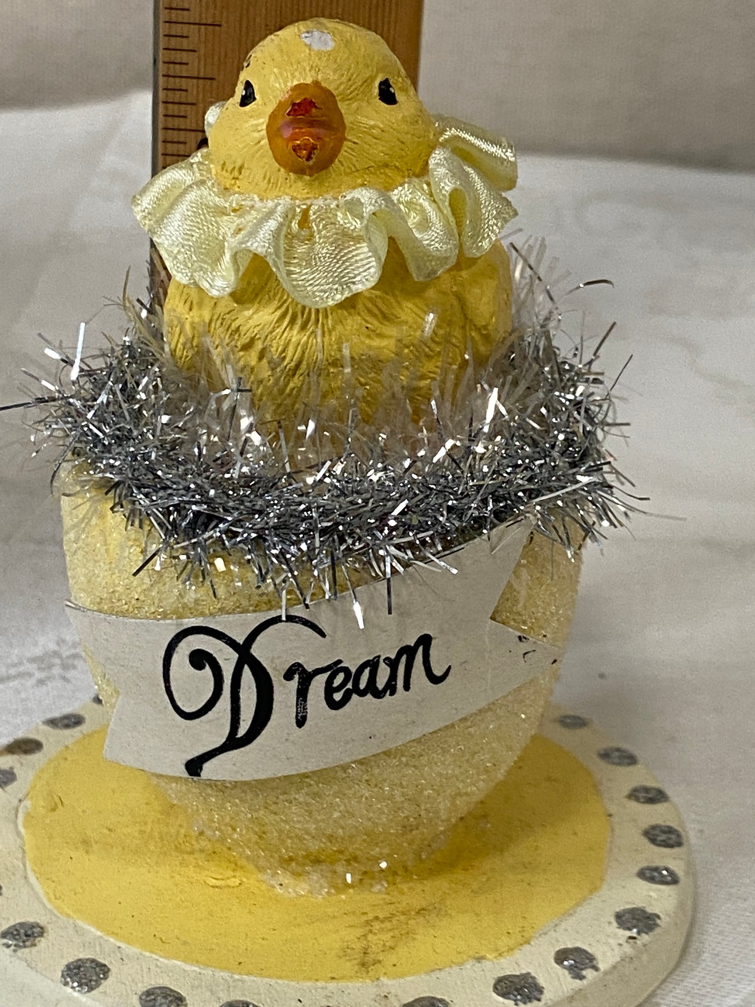 Made to look vintage...I love these things! cute anywhere, thought it would be cute on top of a cake.