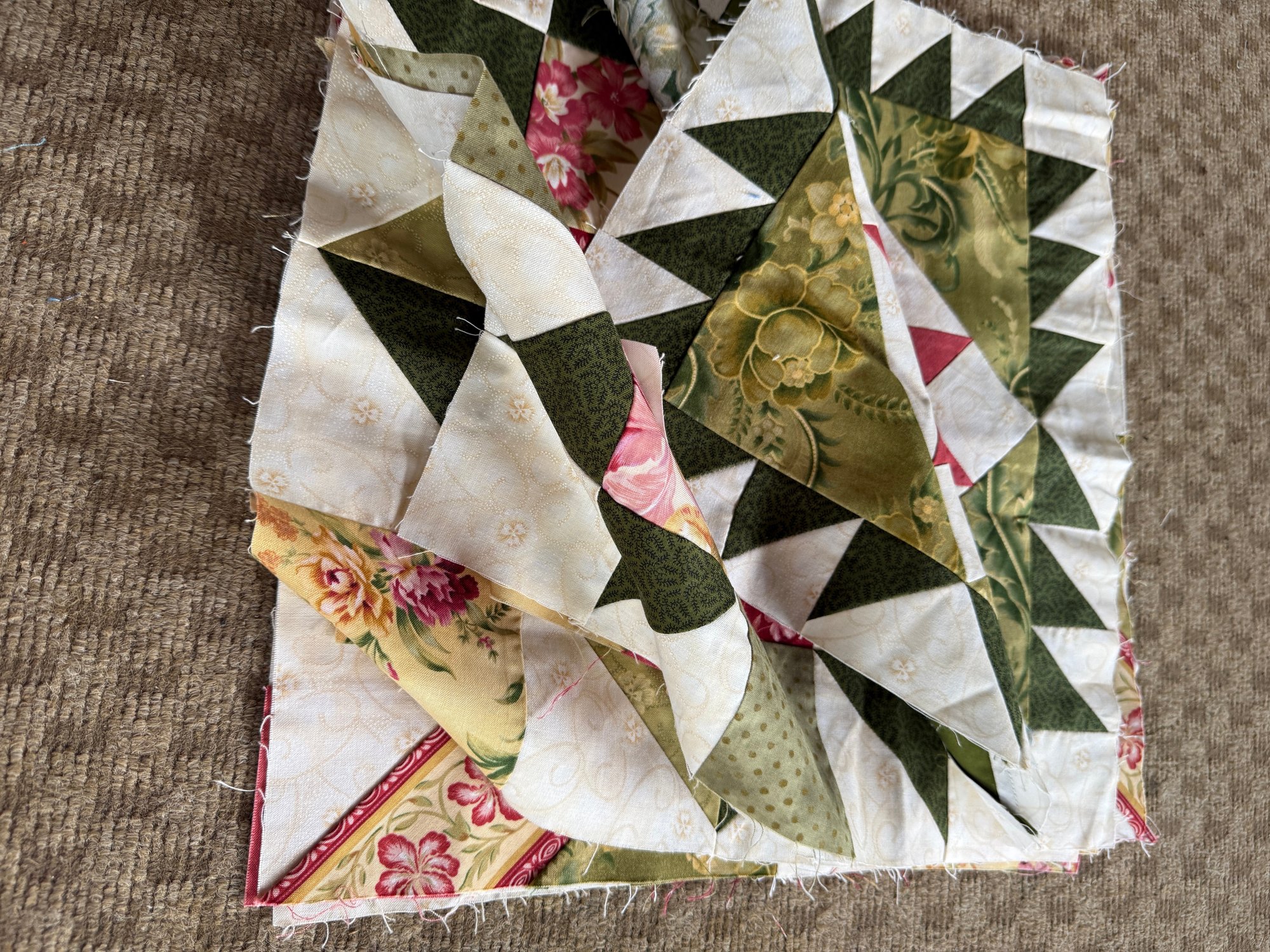 Quilt Squares, Machine Pieced, 15 X 15 In, Set Of 6 Olive And Rose