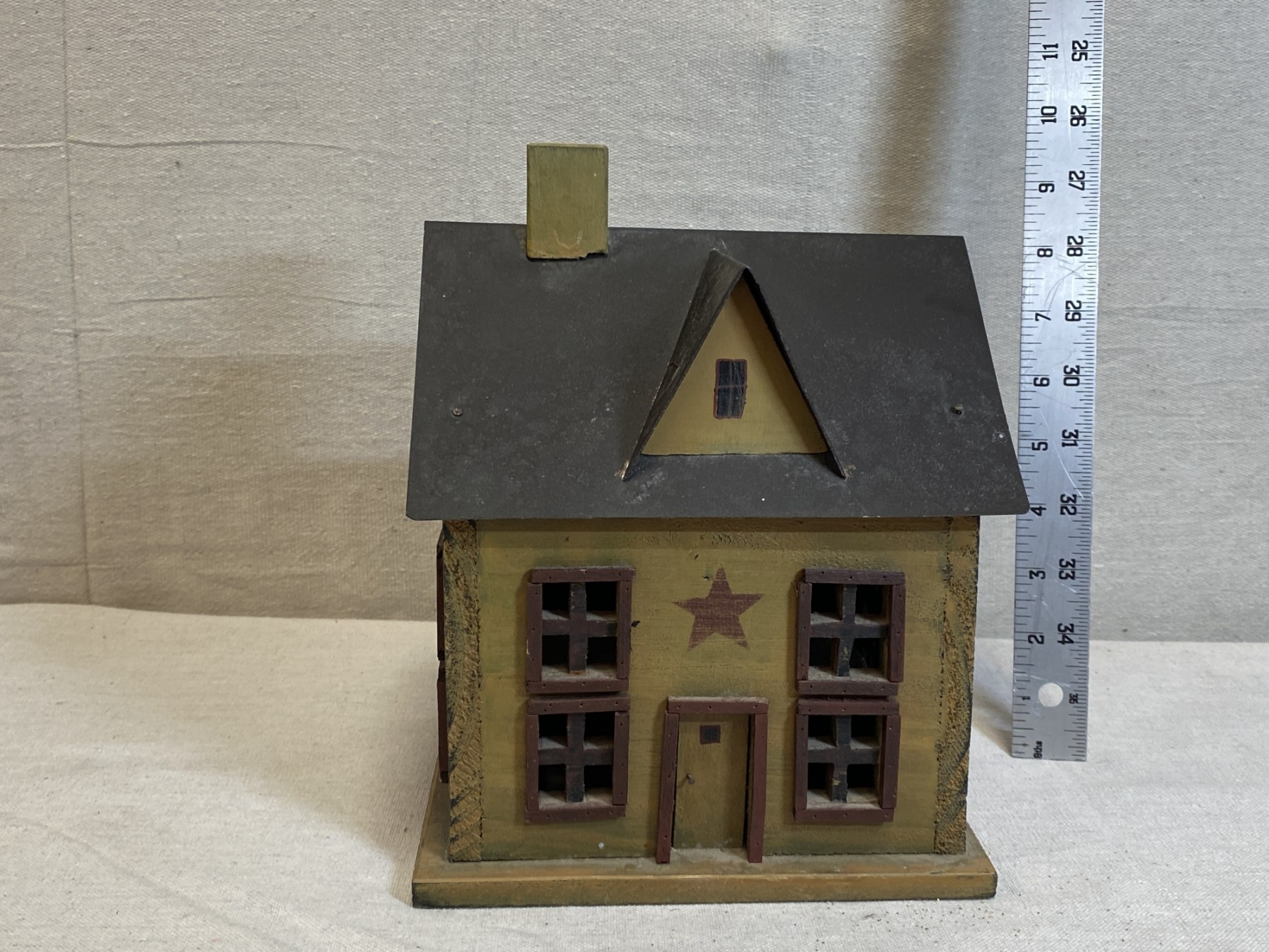 Cord and bulb included, roof lifts off to access interior.