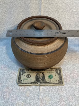 Signed Pottery Vessel With Lid