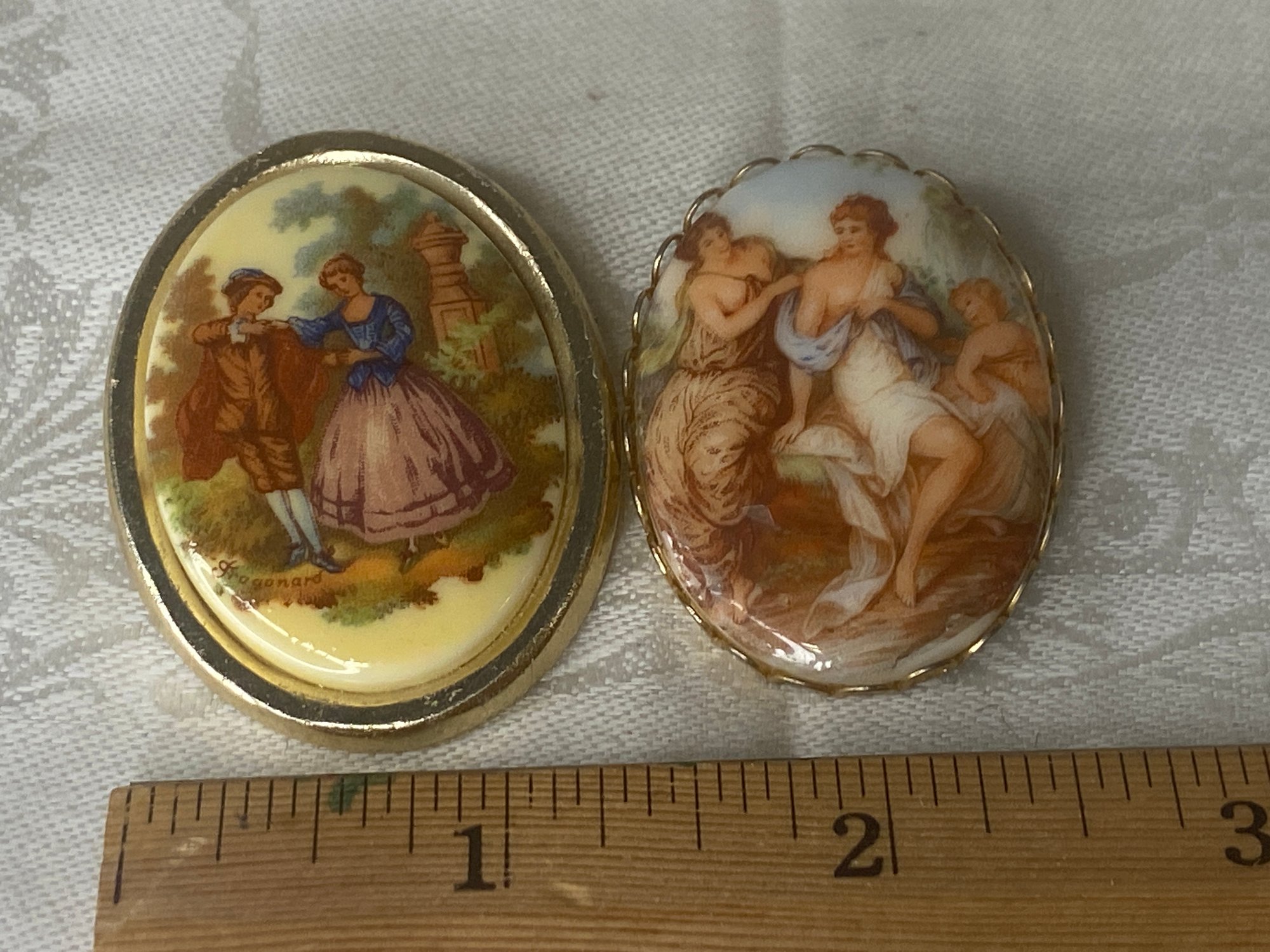 The one with the ornate gold trim is heavy and better quality, the other one is pretty but not the real deal.
