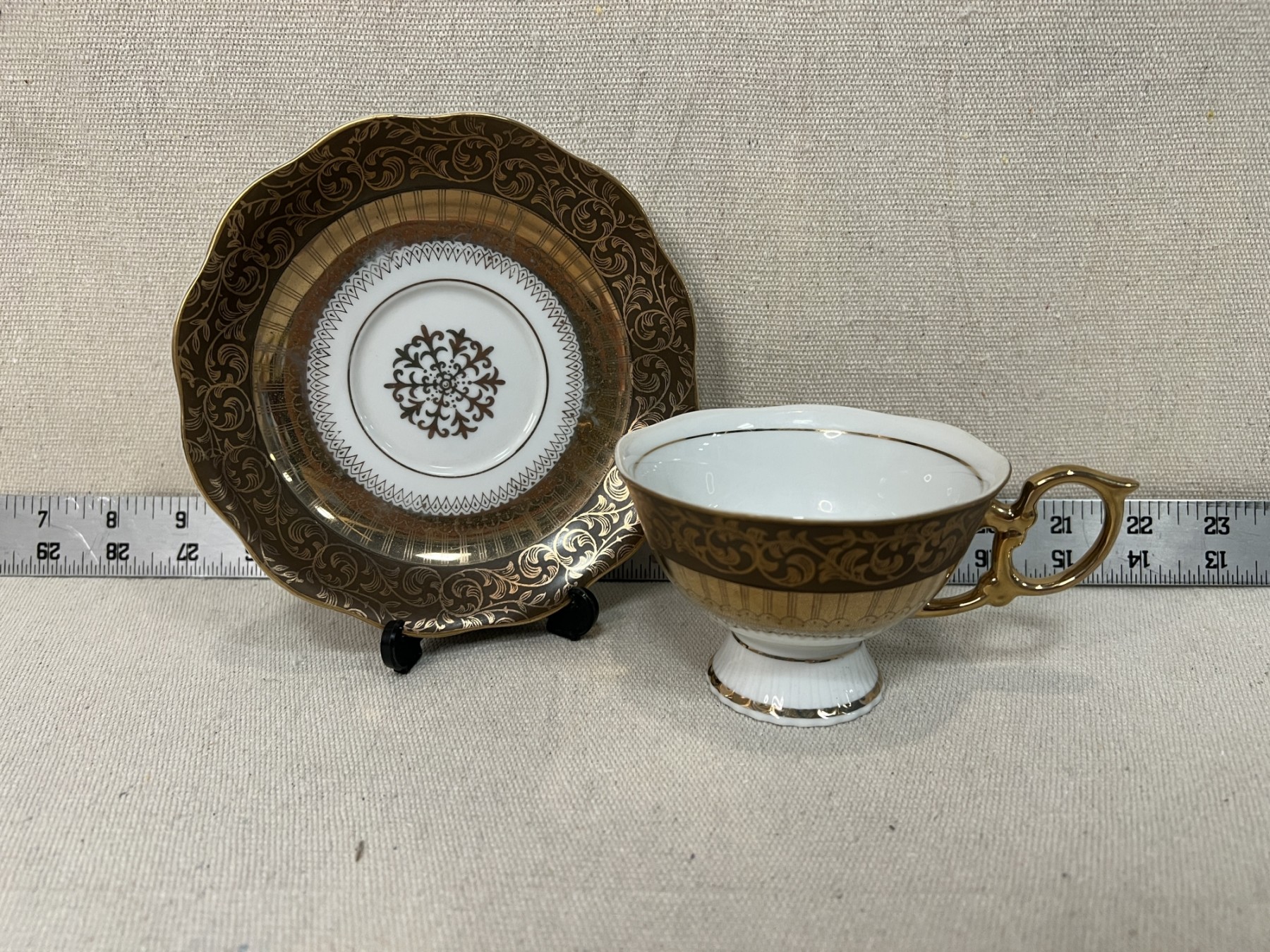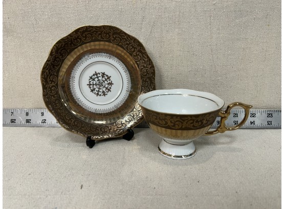 Unmarked Brown & Gold China Teacup & Saucer