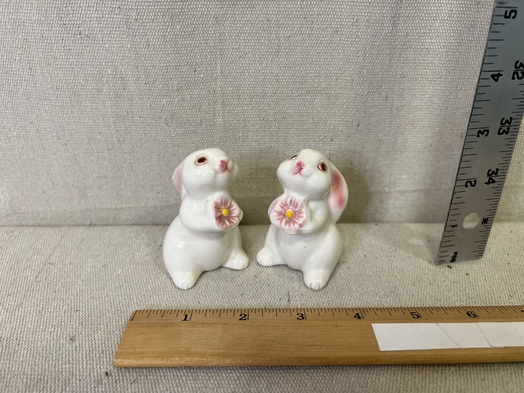 Vintage 1983 Avon Bunny With Flower Salt & Pepper Shakers