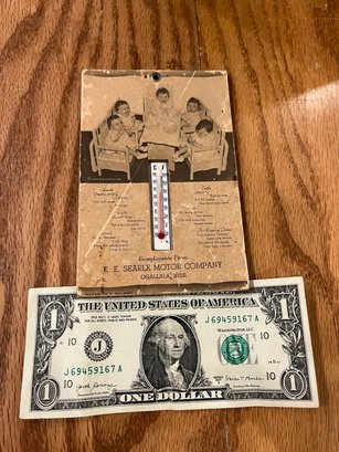 Vintage Cardboard R.E. Searle Motor Co. Advertising Thermometer - 1935