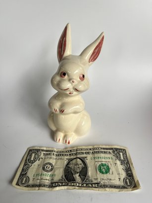 Vintage bunny made to hold a long roll of cotton. You pulled out the cotton to the length you wanted and cut it off, leaving a little cotton piece for the bunny’s tail - so cute!