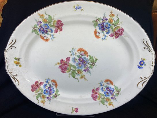 Vintage Crown Potteries Platter With Beautiful Flowers 4 41 Marking