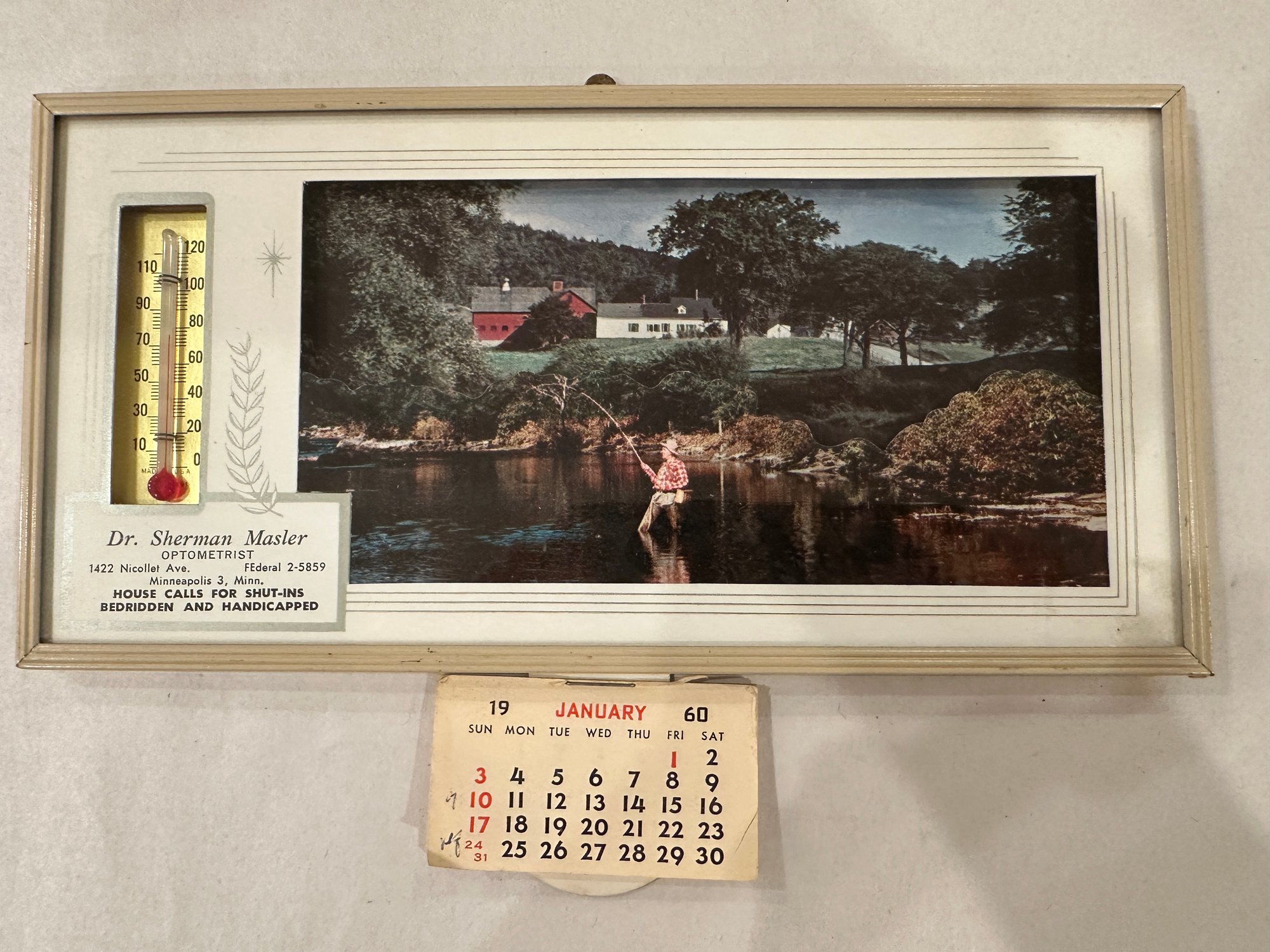 Vintage Dr. Sherman Master Optometrist Advertising Thermometer With 1960 CalendarShdowbox Effect