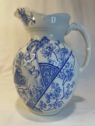 Vintage Large Ceramic Pitcher With Unique Blue Design