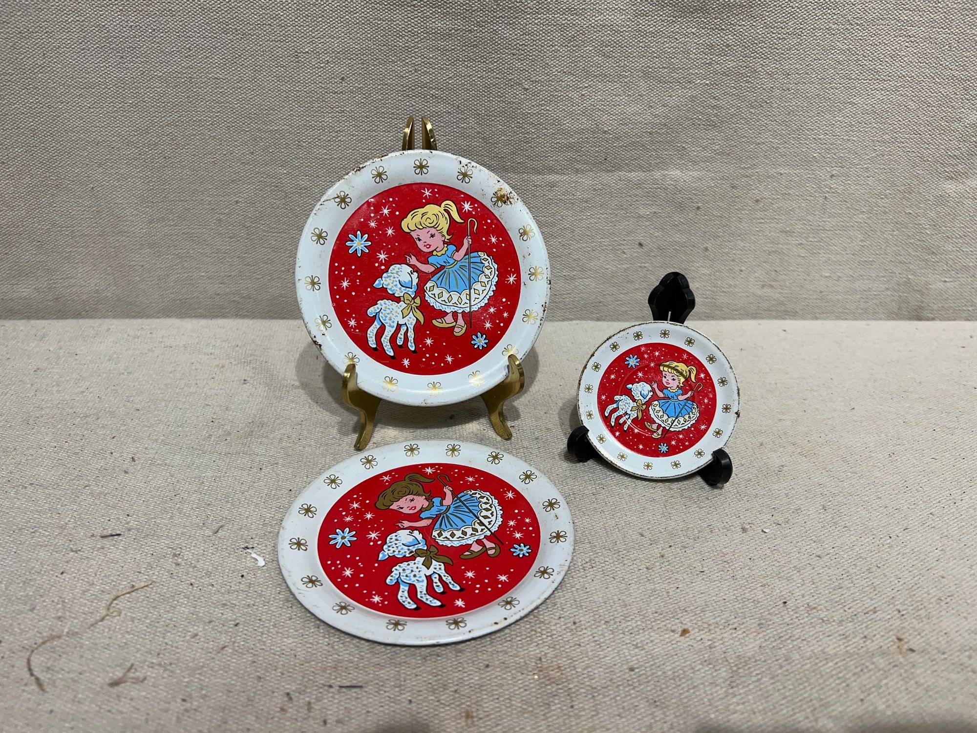 Vintage Little Bo Peep Set Of 3 Tin Plates, 2lg 1sm