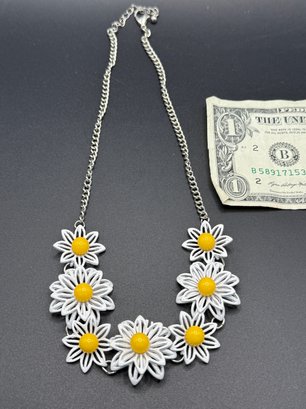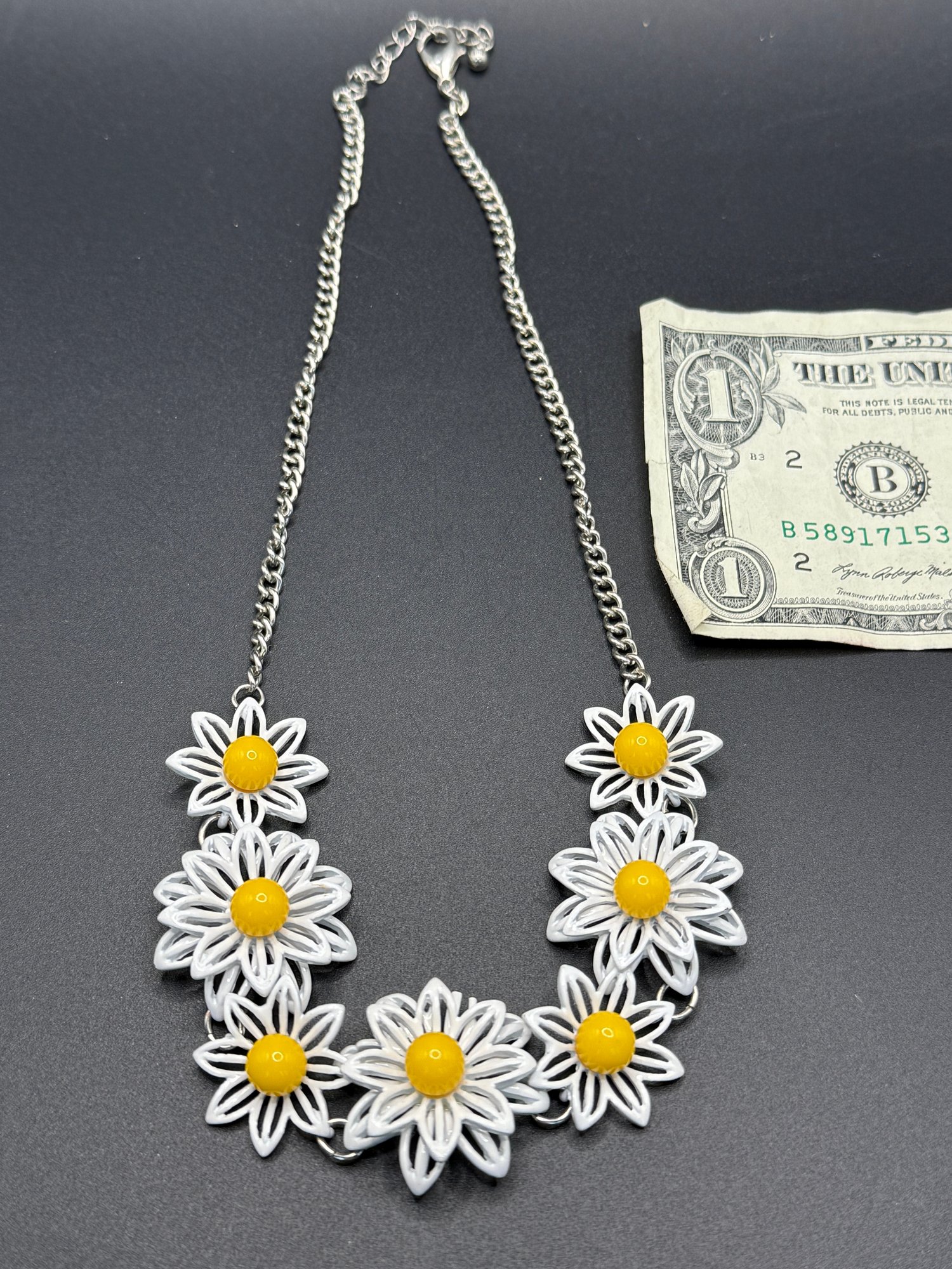Vintage Metal Daisy Necklace, Adjustable Up To 20 Inches