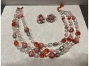 Vintage Necklace & Earrings Pink Beaded