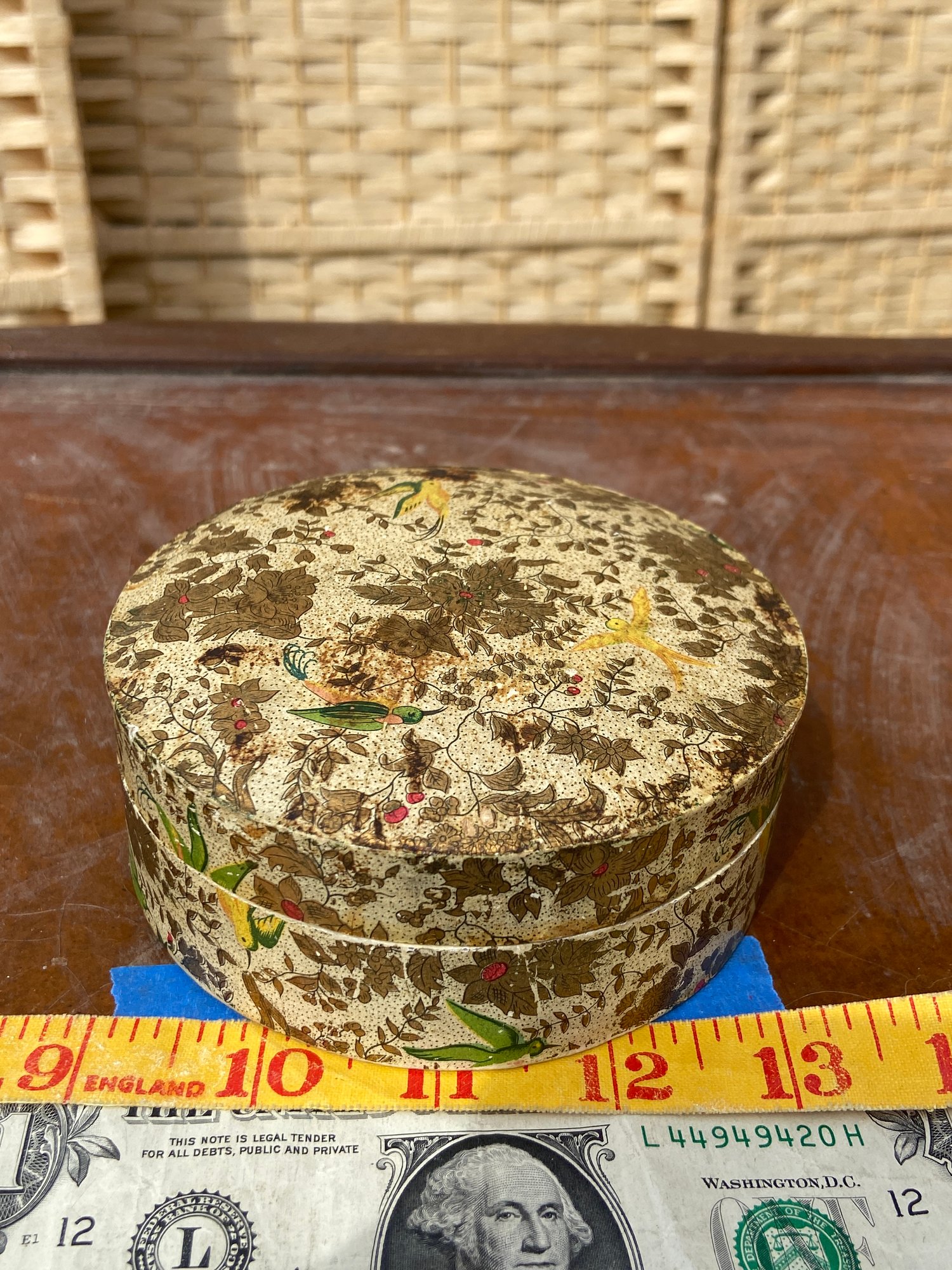 Vintage Paper Mache Box W/8 Matching Tin Coasters