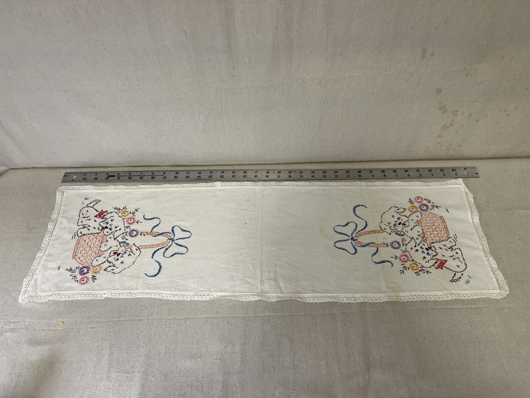 Vintage Puppy Embroidered Table Runner