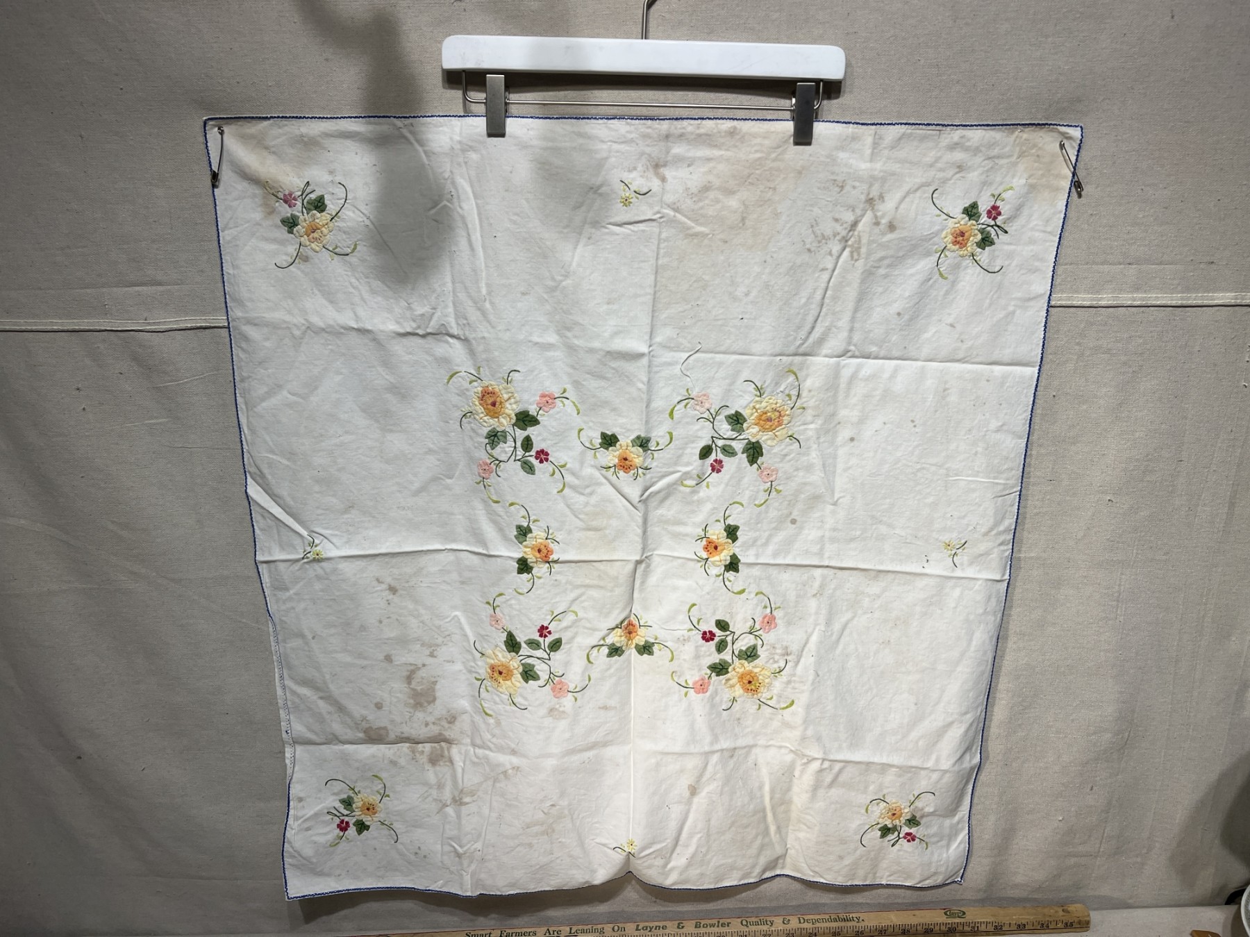 Vintage Quilted Floral Square Table Cloth 30"