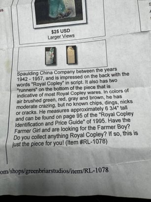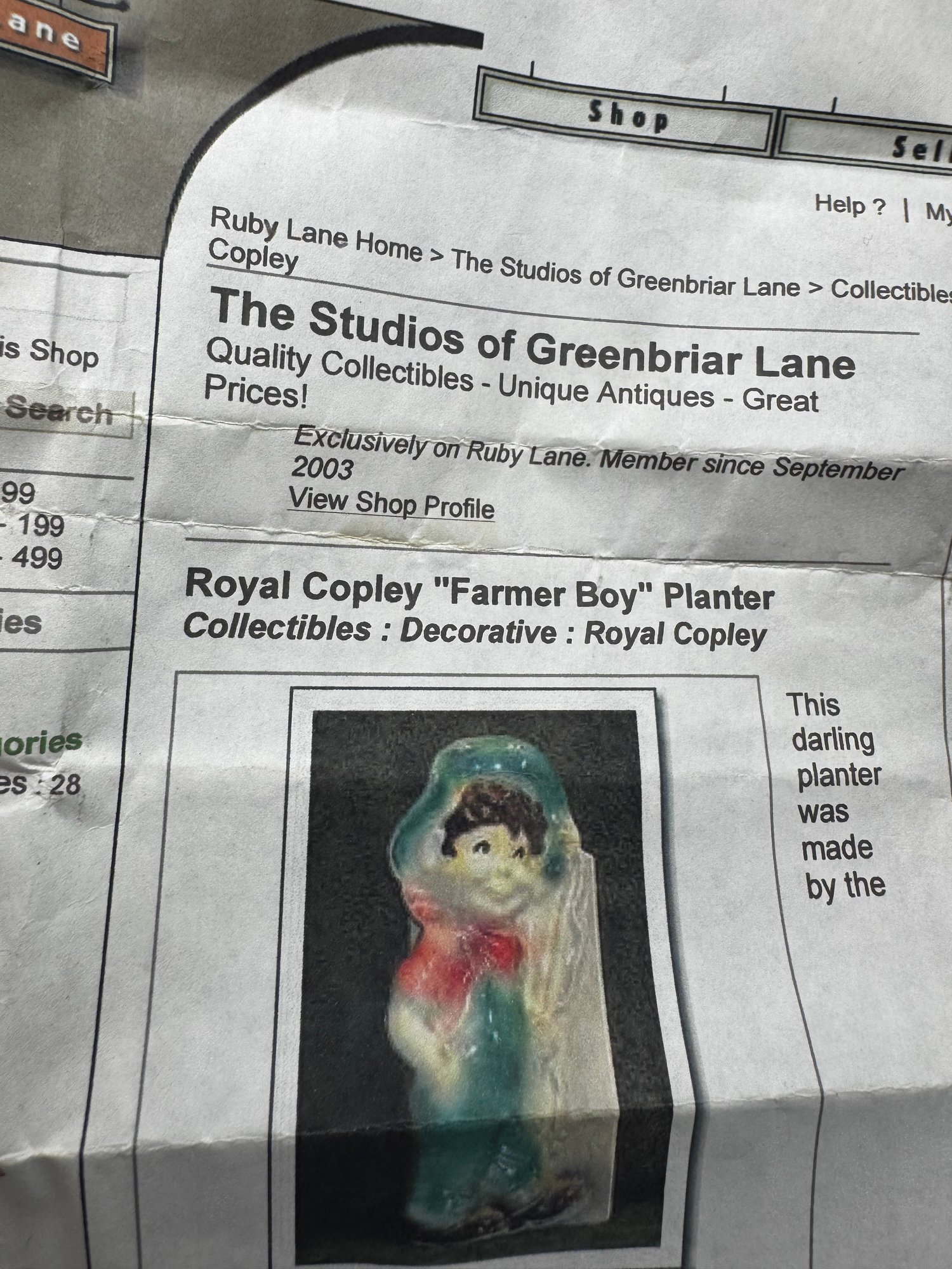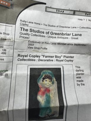 Vintage Royal Copley 'farmer Boy' Planter - 1940's - 1950's