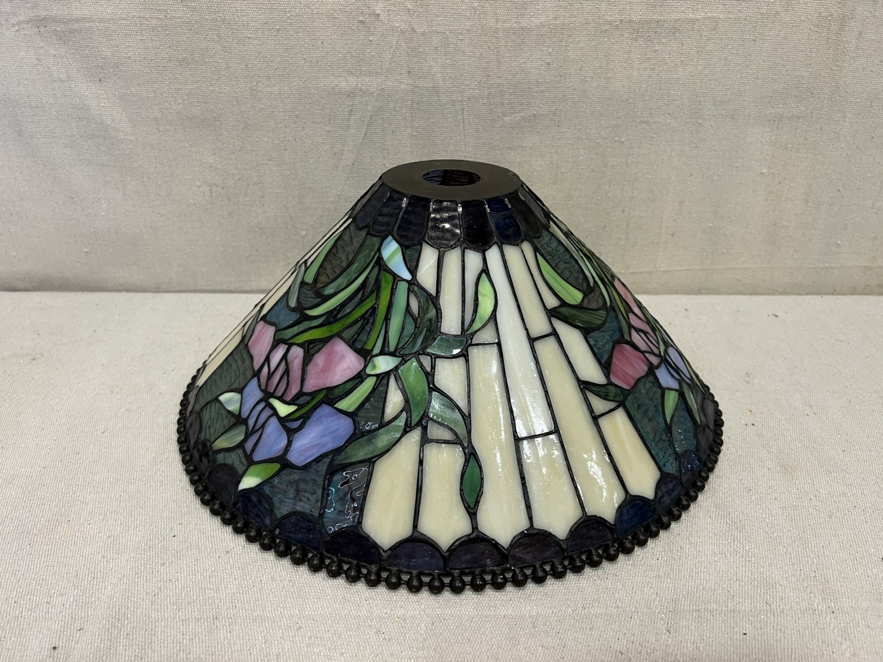 Vintage Stained Glass Lampshade, Gorgeous, Small Piece Of Glass Missing, Could Be Repaired