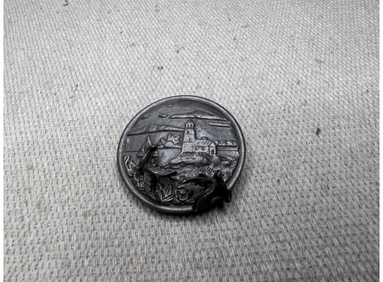 Vintage Torino Light House Brooch Earring Set Pewter Pierced Birds