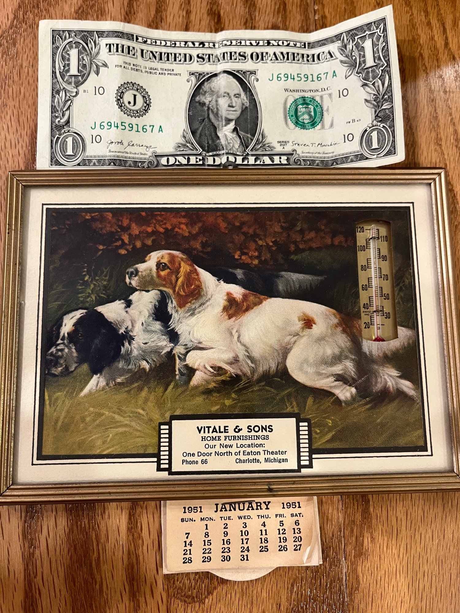 Vintage Vitale & Sons Advertising Thermometer With 1951 Calendar