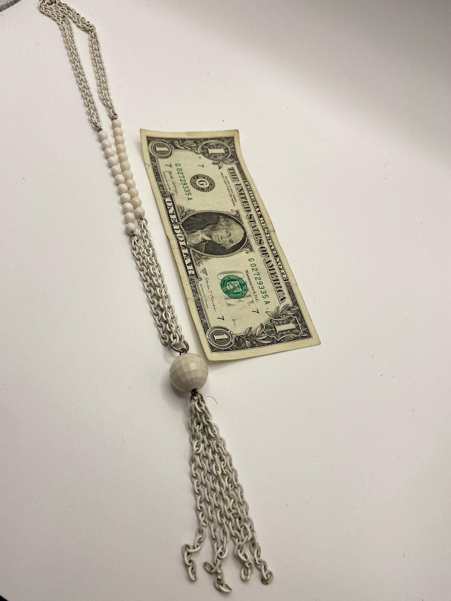 Vintage White Necklace 24" Inch Chain Plus The Charm. Really Cool