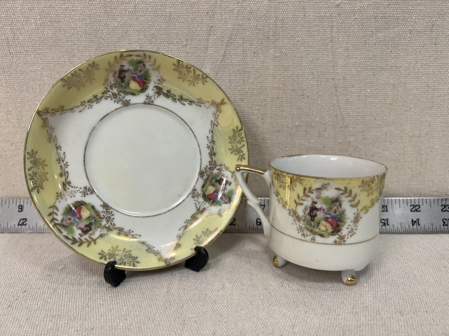 Yellow And Gold China Teacup & Saucer Unmarked
