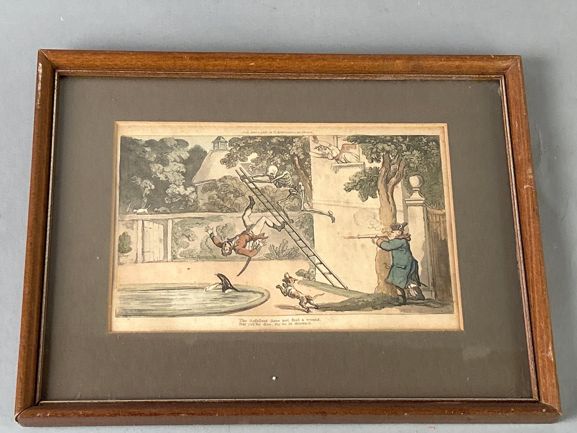 Antique EngravingAntique Engraving, Political Commentary With Skeleton “ the assailant does not feel a wound, but yet he dies for he is drown’d” 10“ x 13“