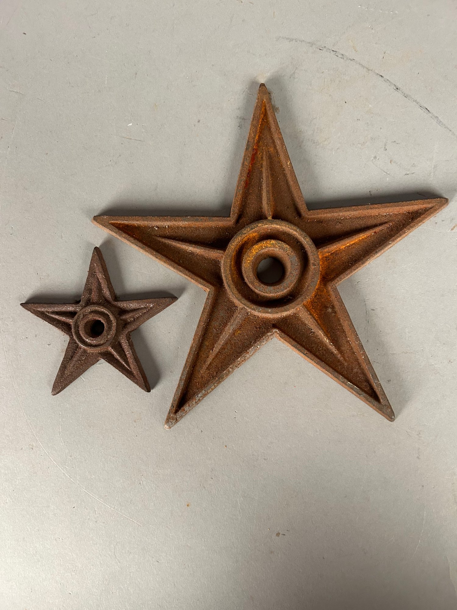 2 vintage Cast Iron stars largest one 9"