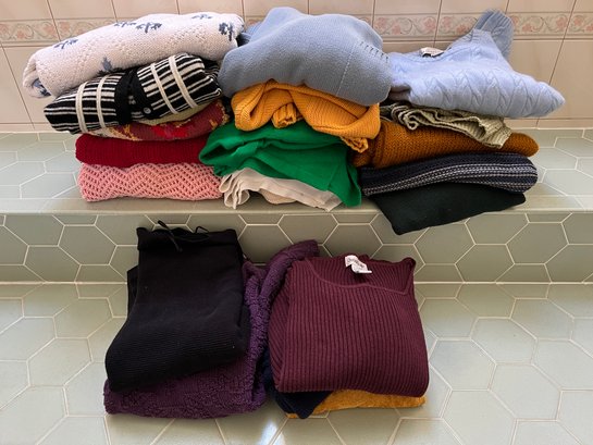 20+ Women’s sweaters including Rosanna Women, Precious Fibers, Michael Kors, J Crew and more. Fibers include cashmere, wool, cotton and acrylic (CCC)