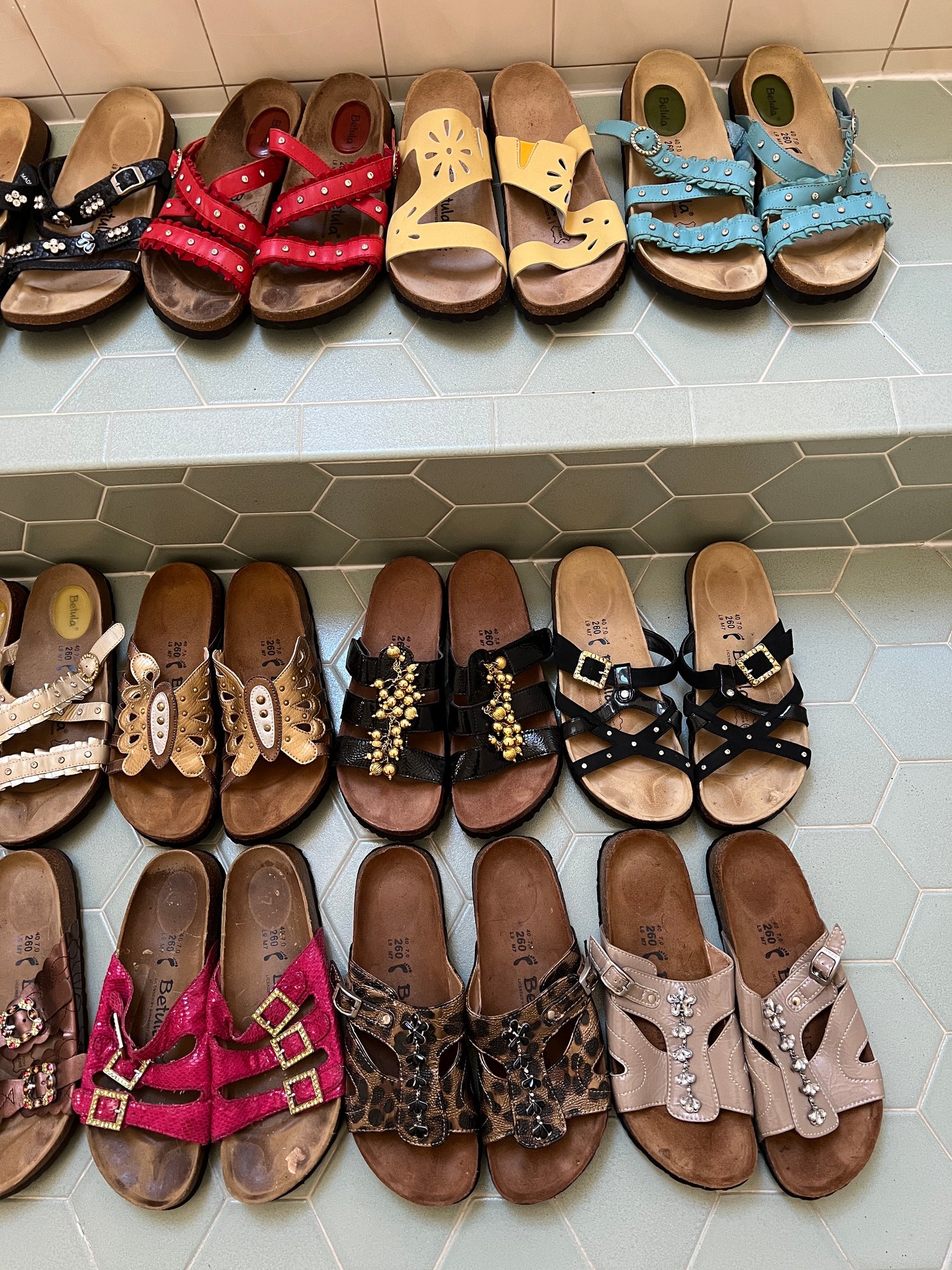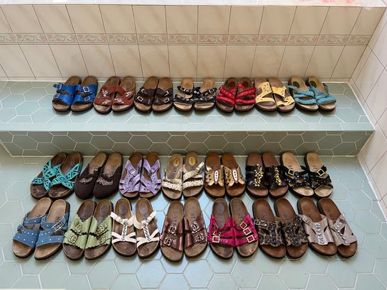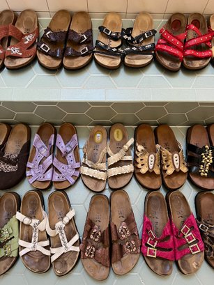 20 pairs of Betula sandals and 1 pair of clogs. All ladies size 9. (C)