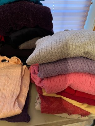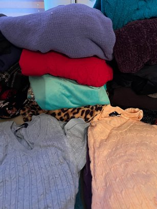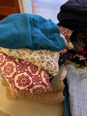30+ pieces of clothing, sweaters, fleece pants, etc… (GGG)