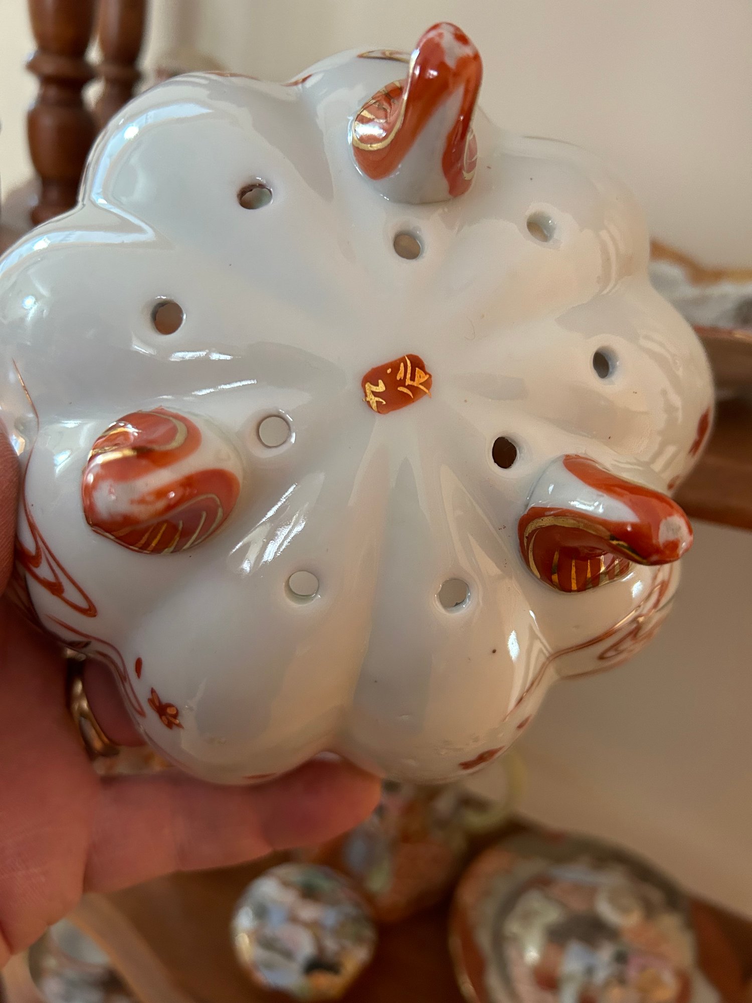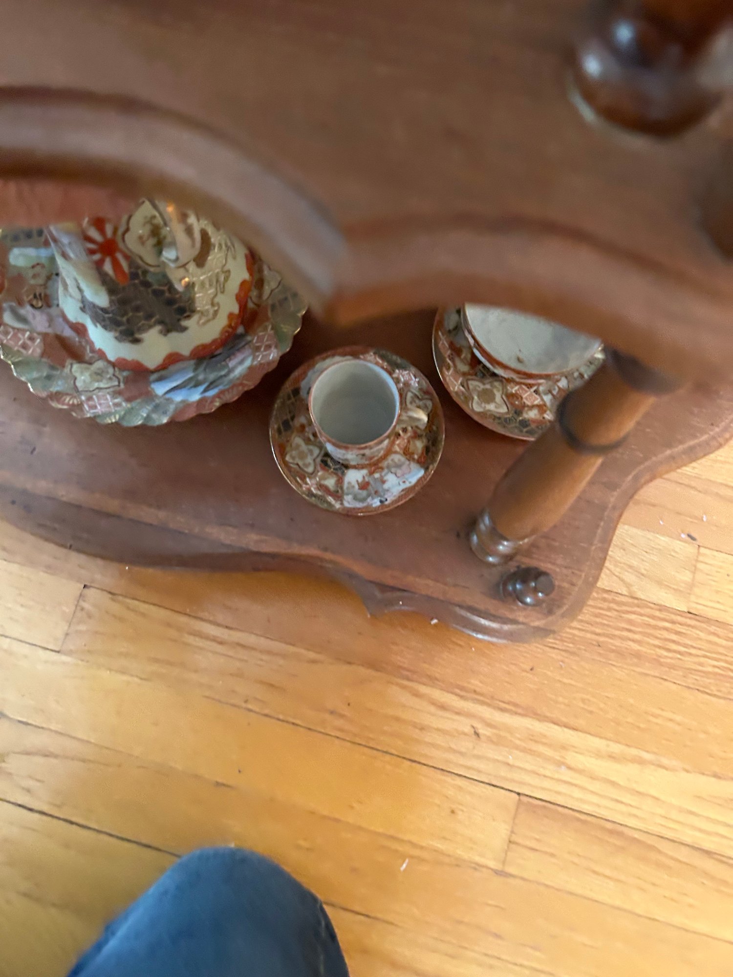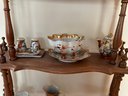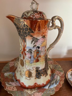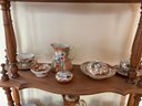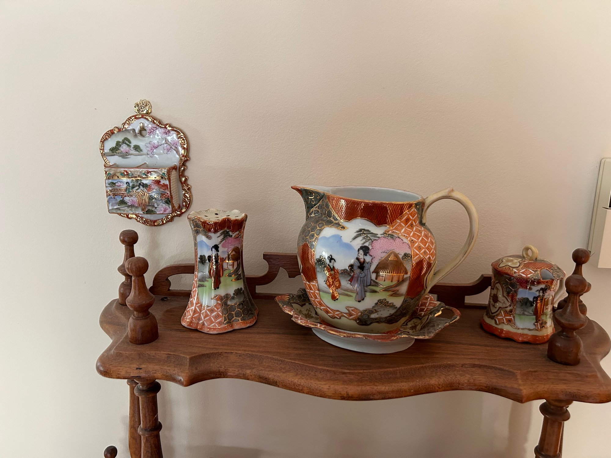 35 pieces of Satsuma including serving pieces and cups and saucers. Shelf not included