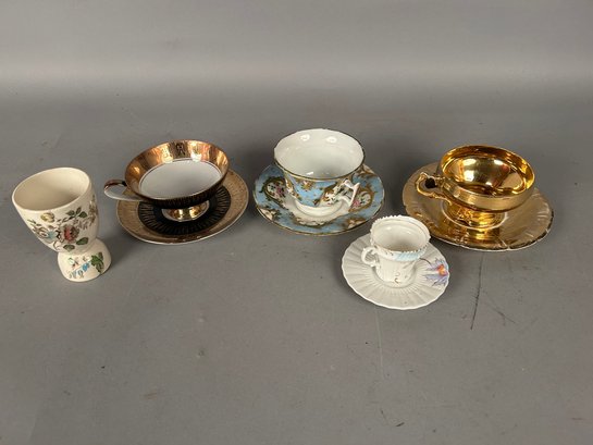 4 vintage tea cups with saucers plus egg cup