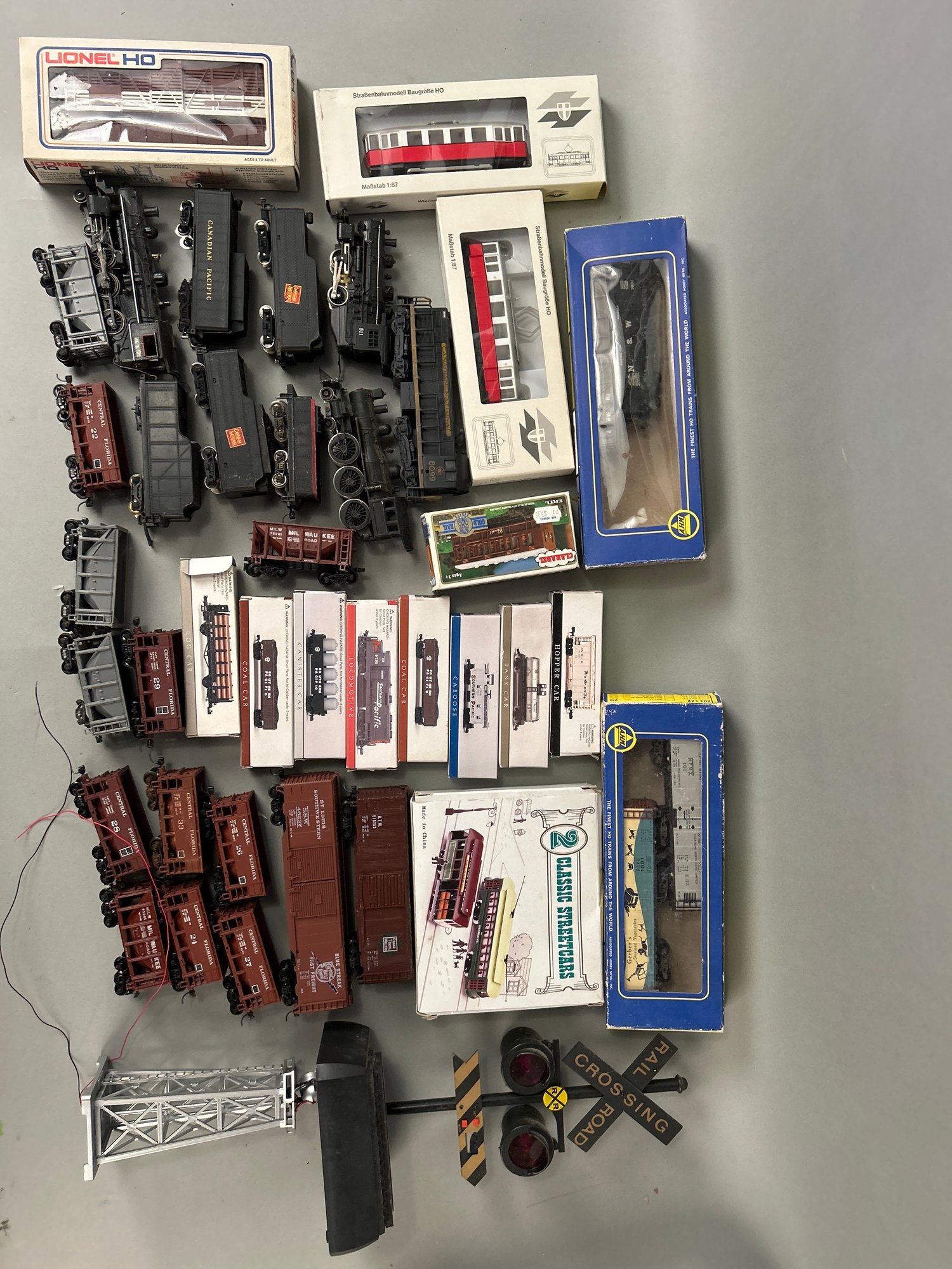 40 Pcs Miscellaneous Trains And Train Accessories, HO Scale And Smaller.