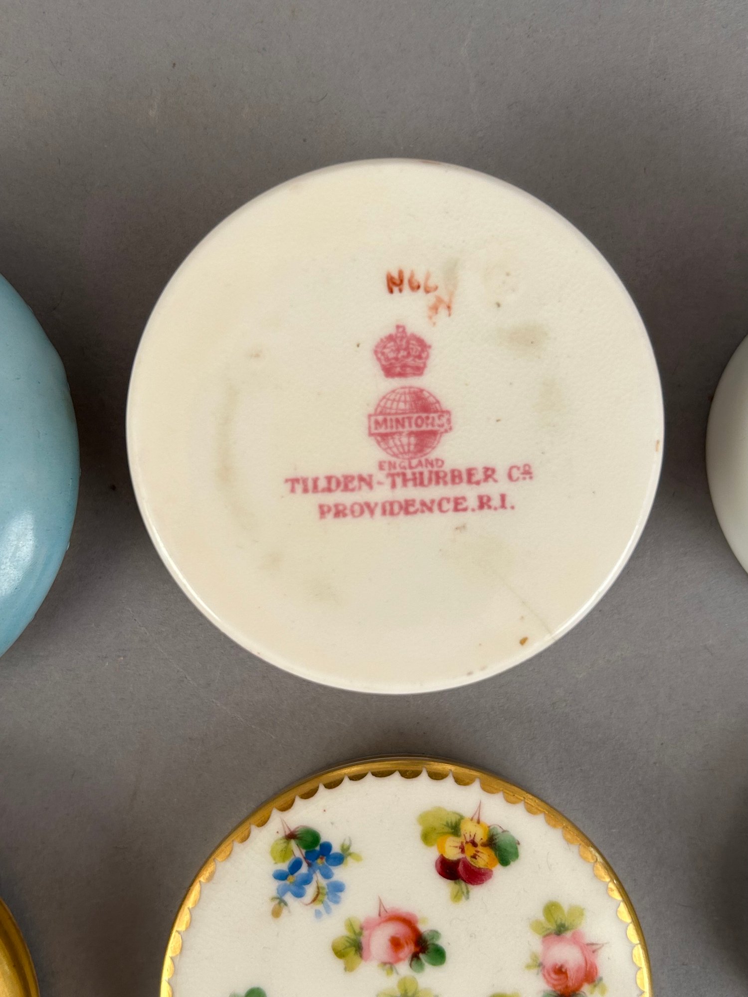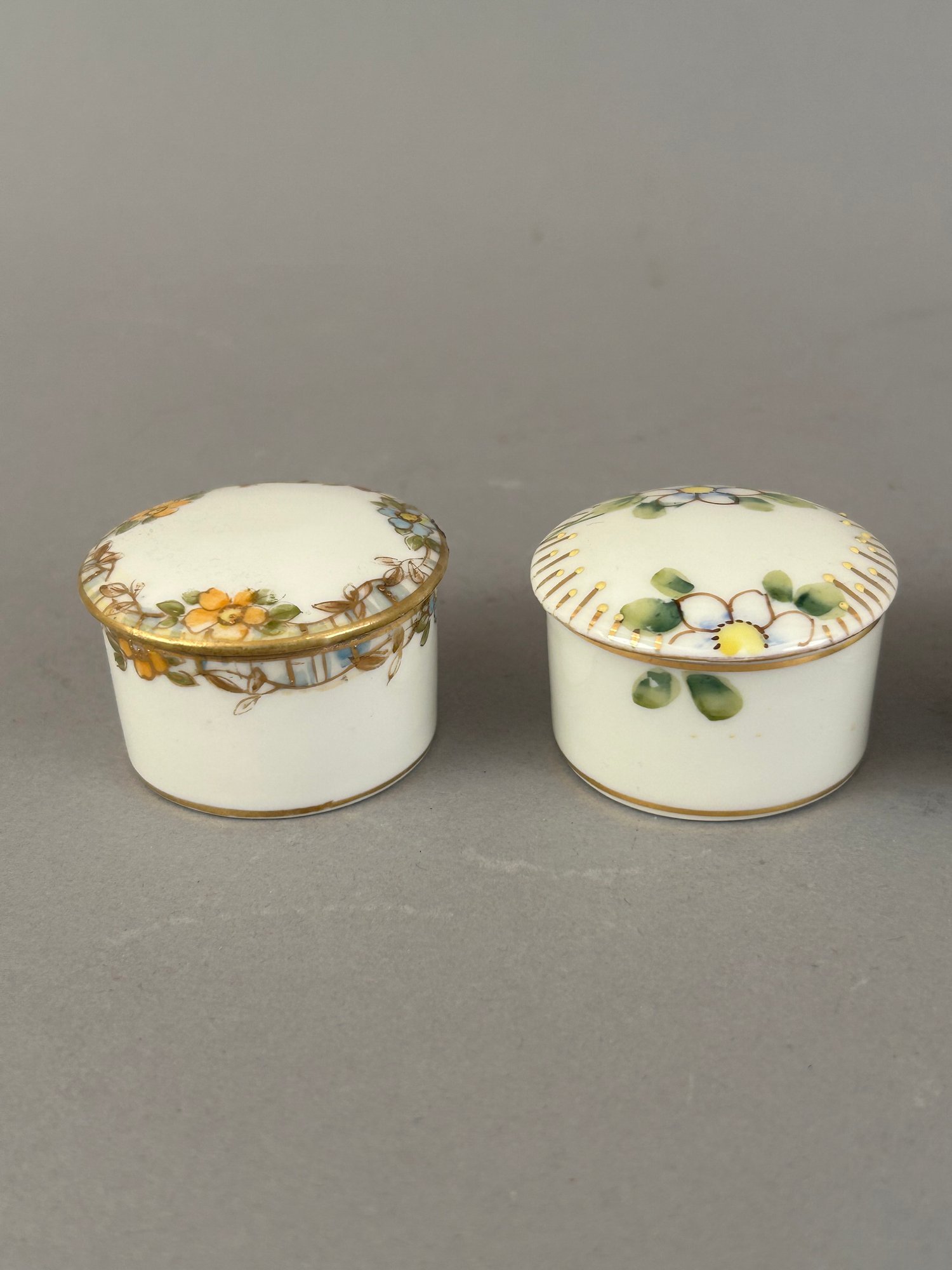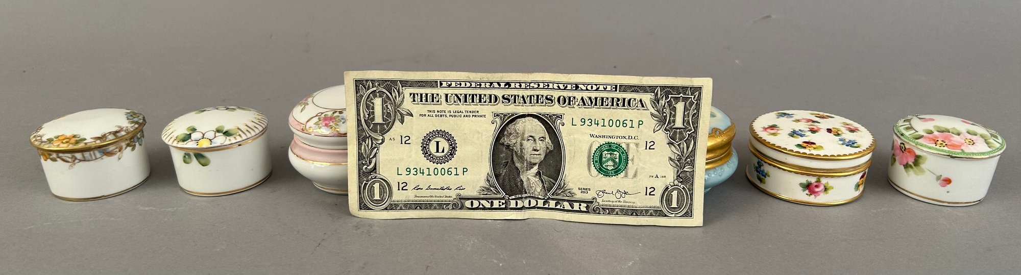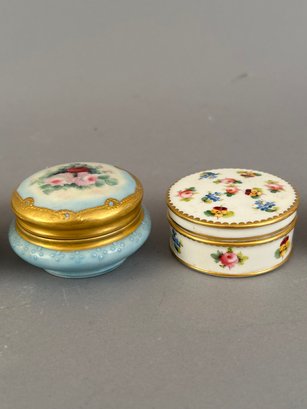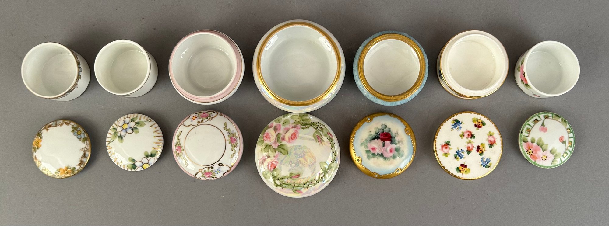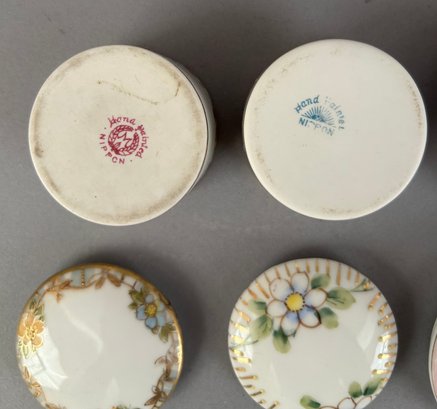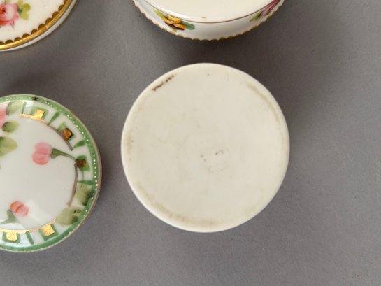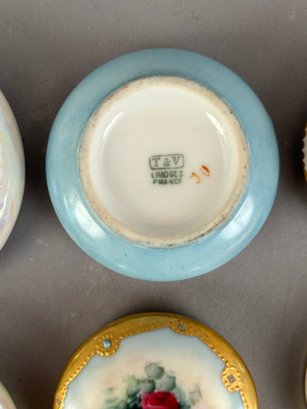 7 small round porcelain covered trinket dishes including Limoges, Minton and Nippon