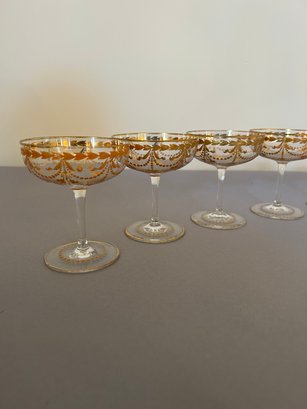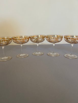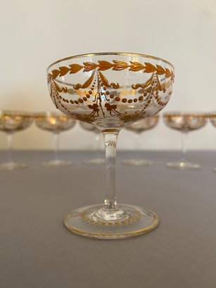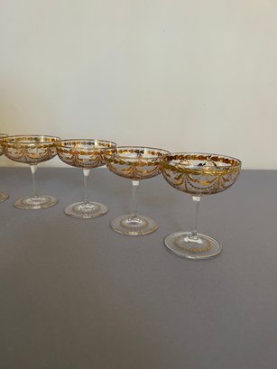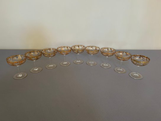 9 Sherbet Champagne Glasses with Gold Decoration. 4 inches.
