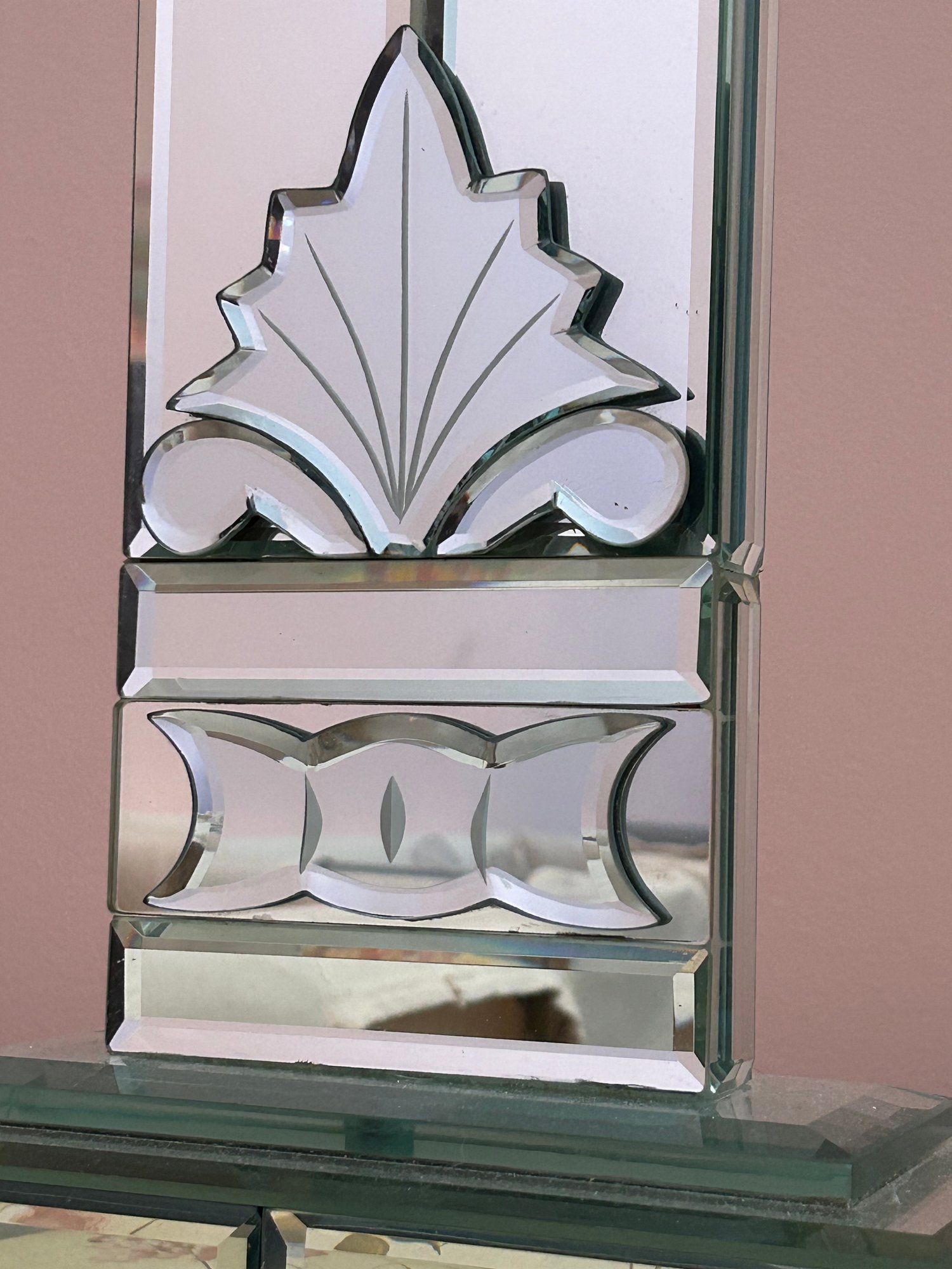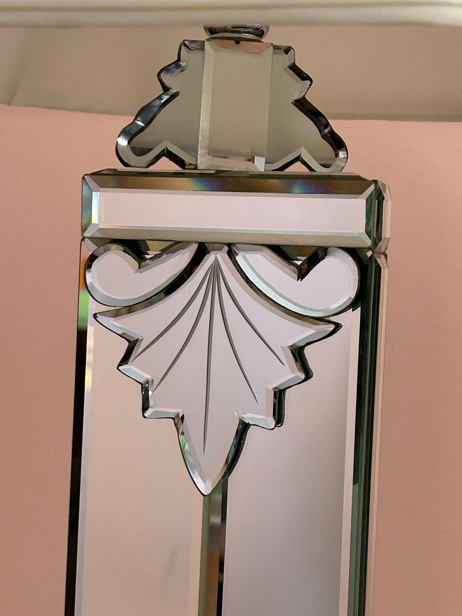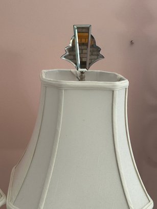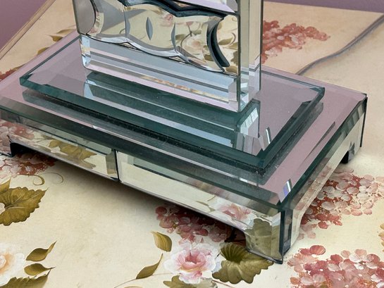Pair of venetian glass mirrored table lamps with beveled glass. 37 inches tall each