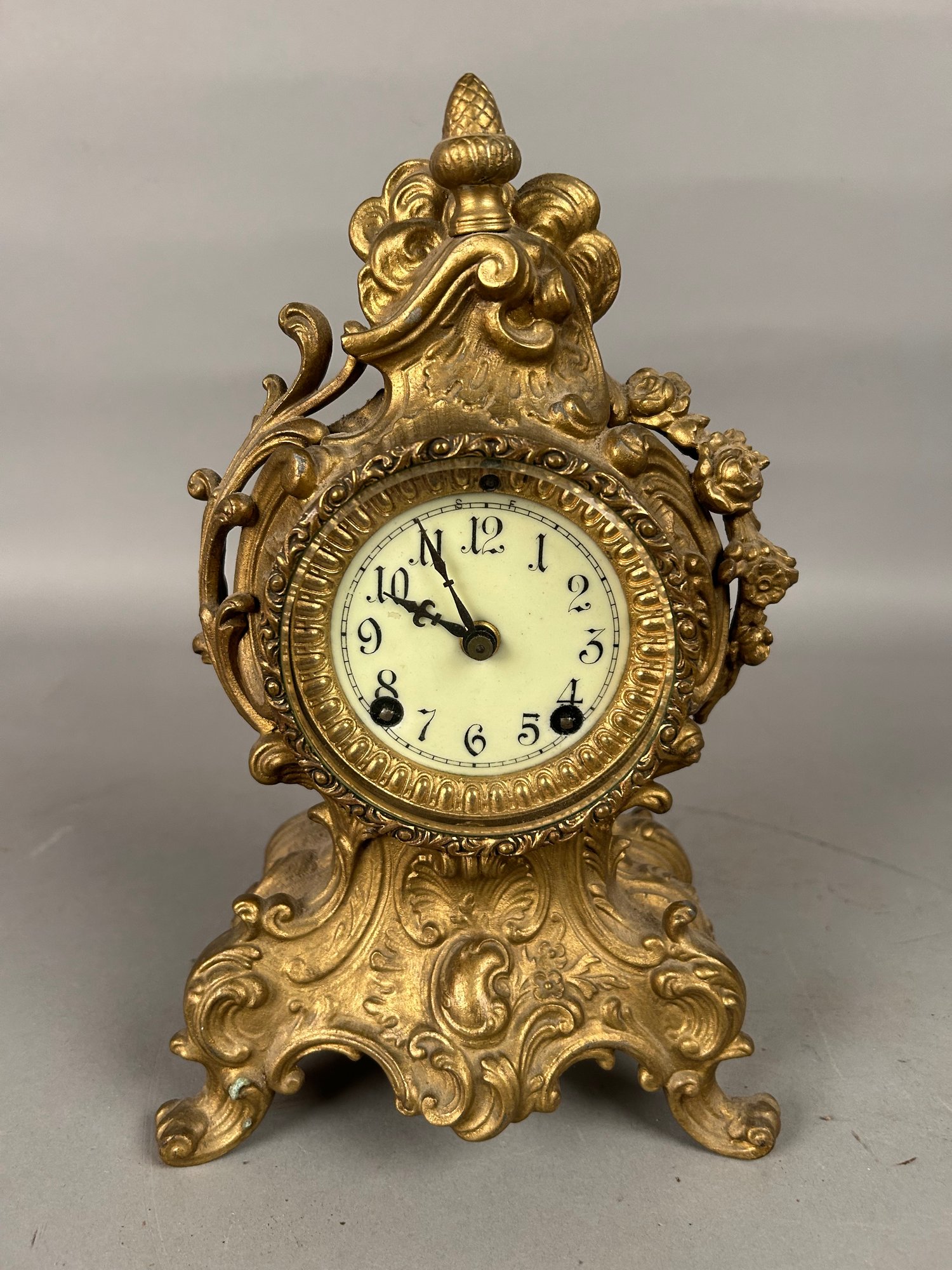 Ansonia clock company French style mantle clock, porcelain face brass case