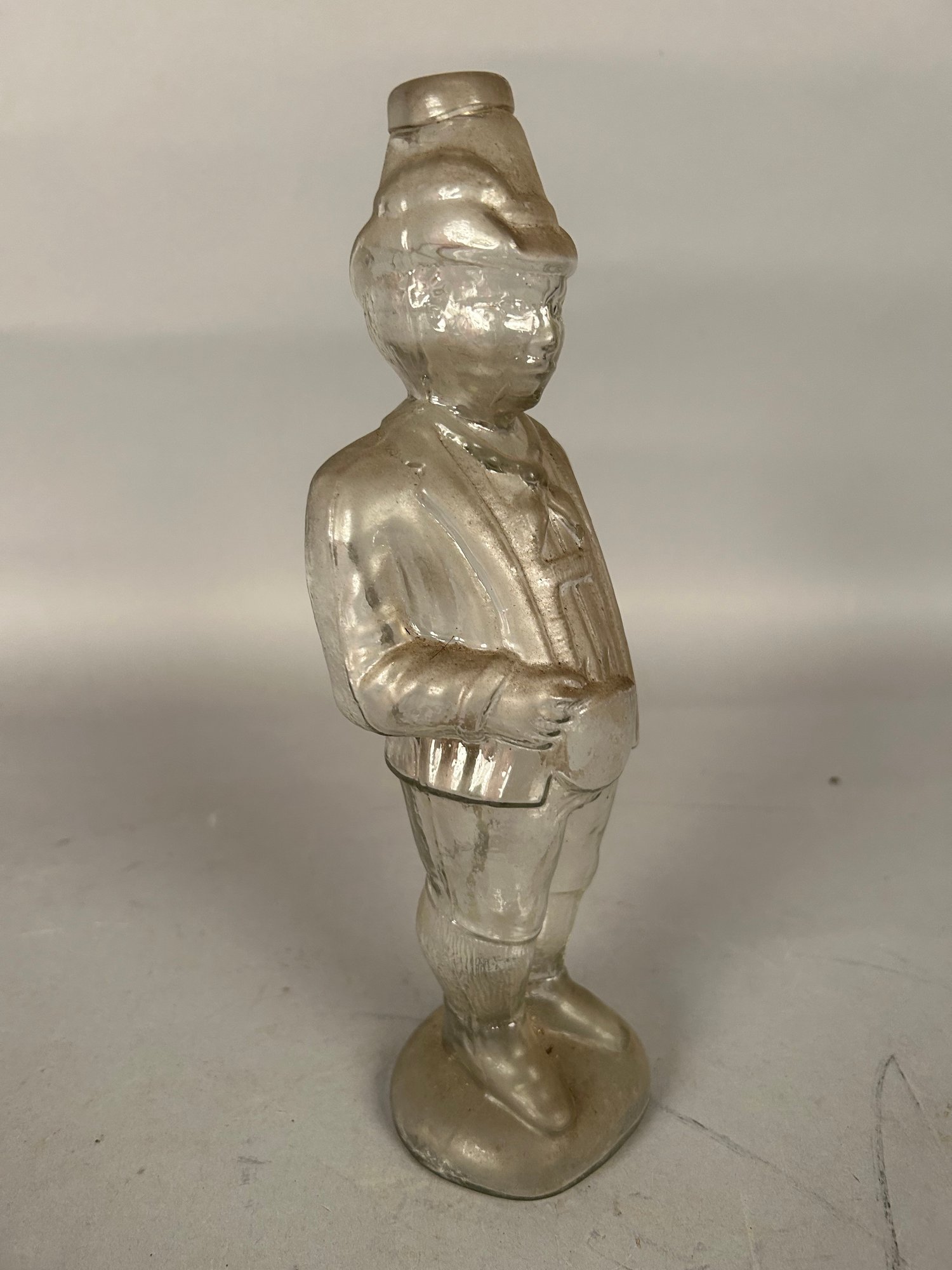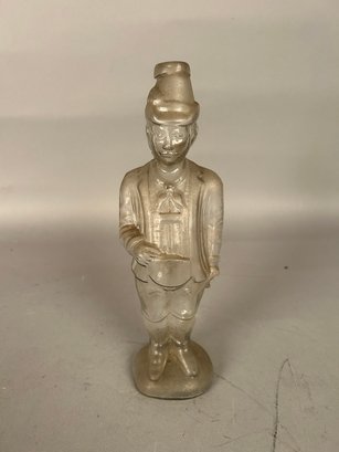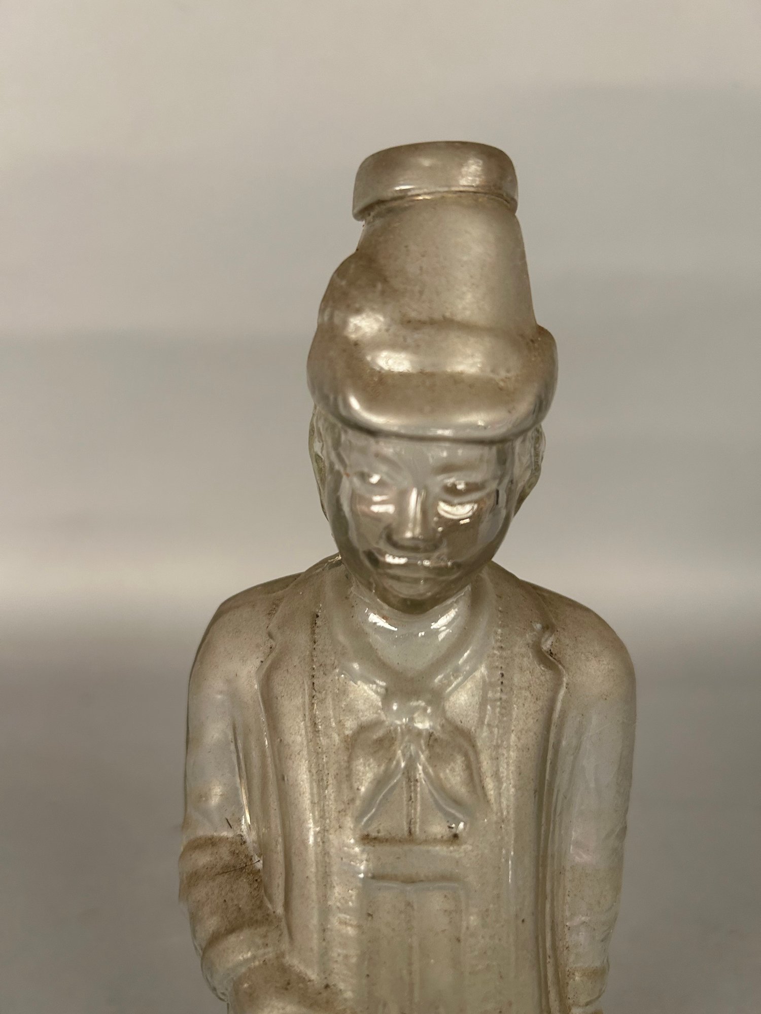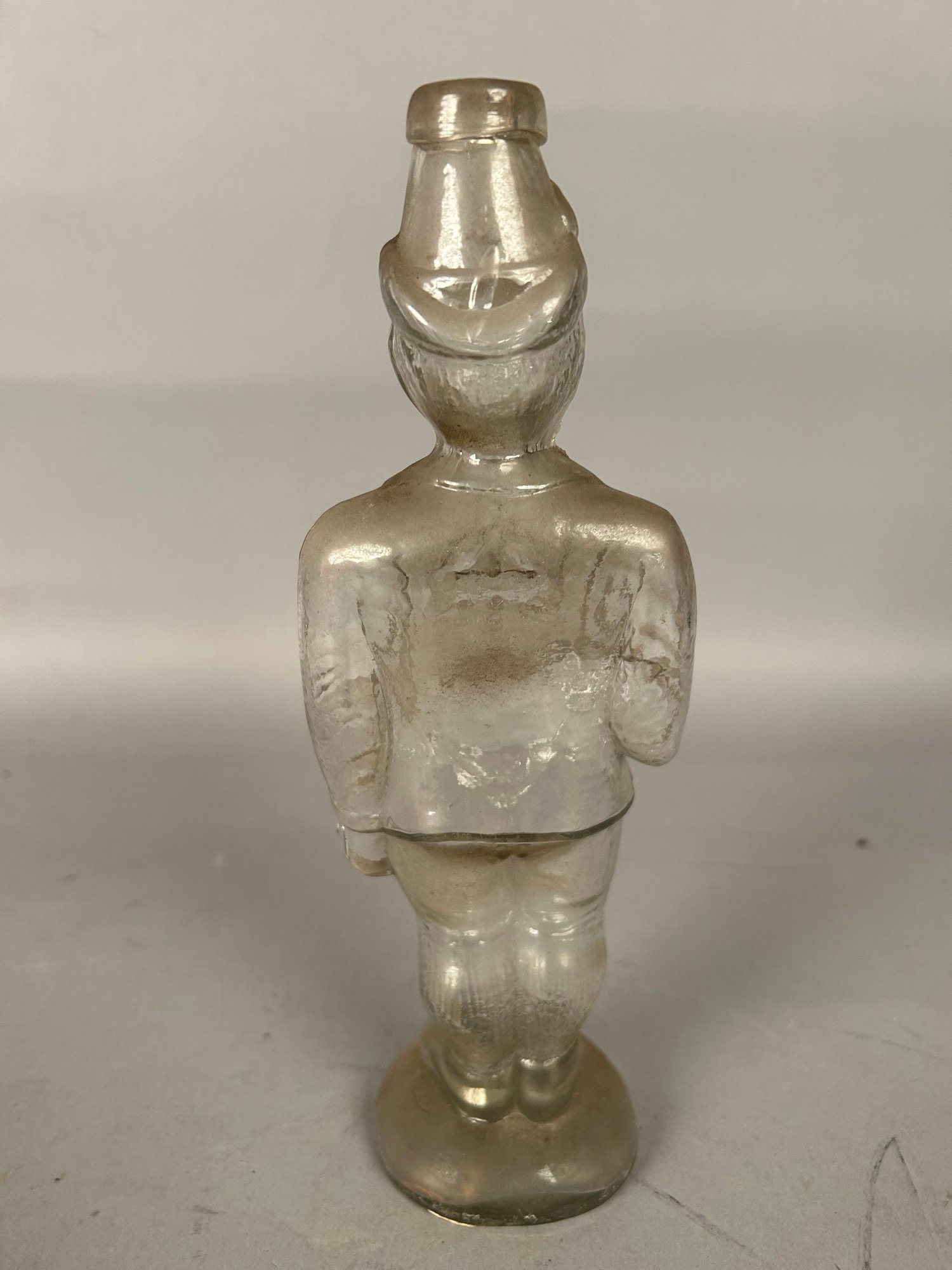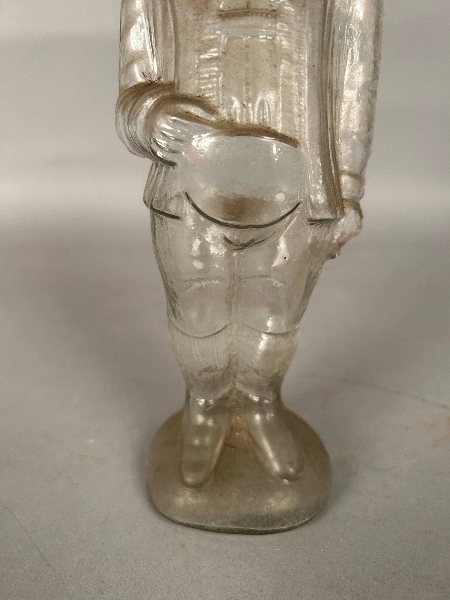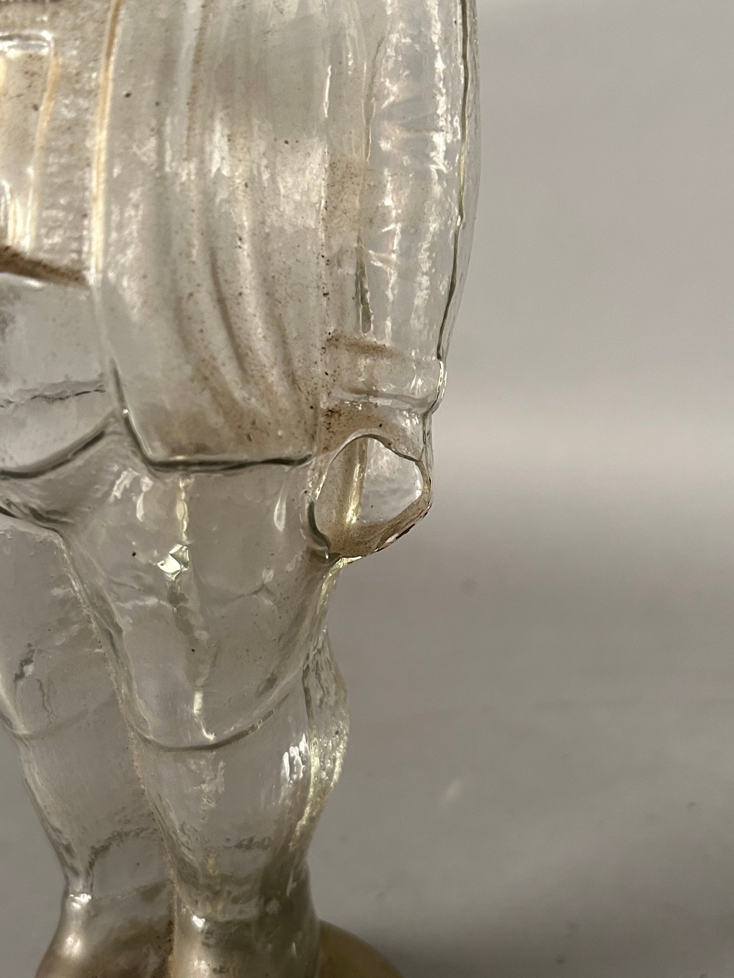 Antique figural glass bottle standing gentleman blown pontle. Damage to hand