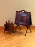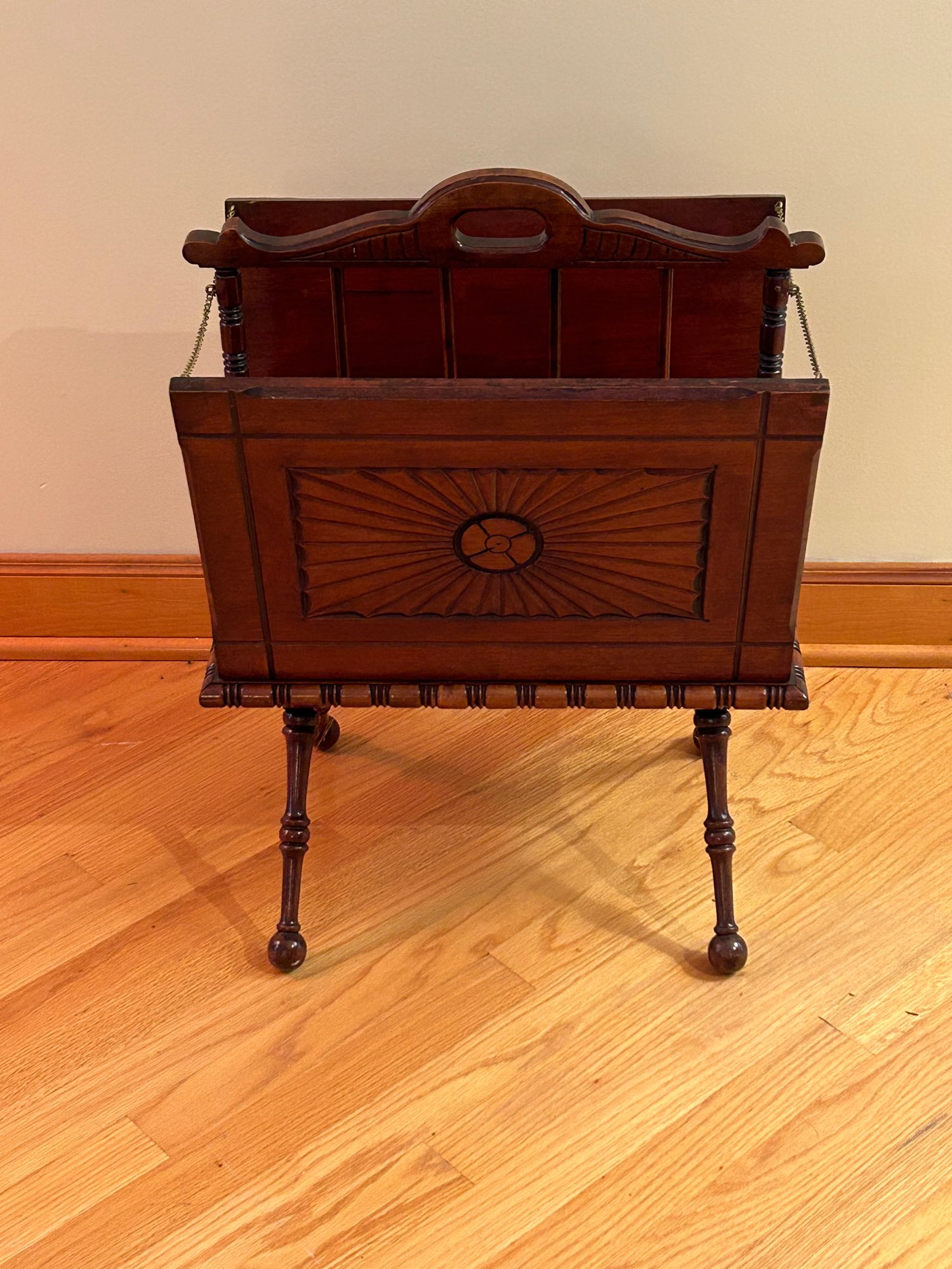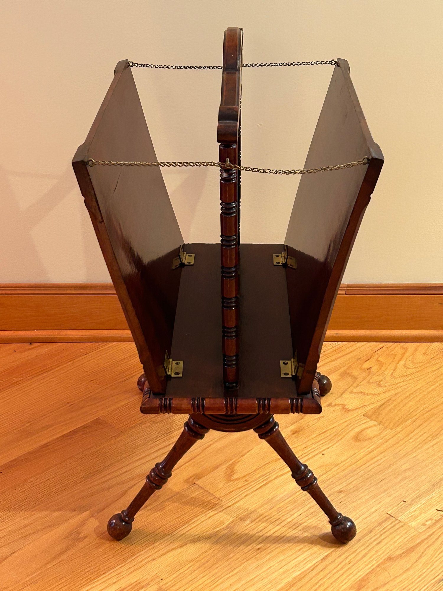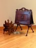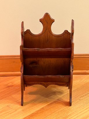 Antique magazine rack and miniature shelf unit. Both walnut arts and craft style largest 24x18.5x8.5 inches