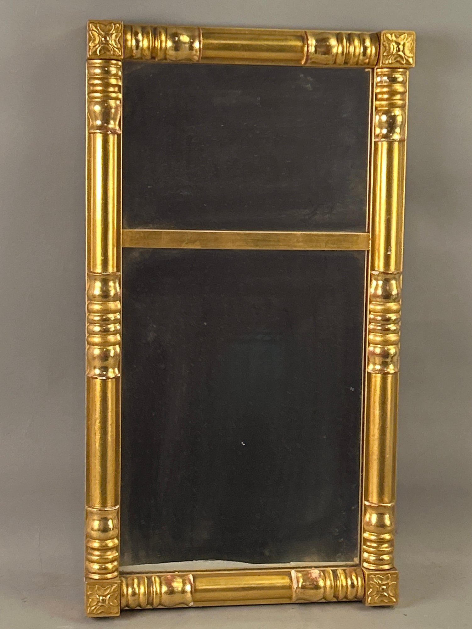 Antique Mirror Turned Columns And Rosettes, gold leaf. Mid 19th C. 27“ x 15“.