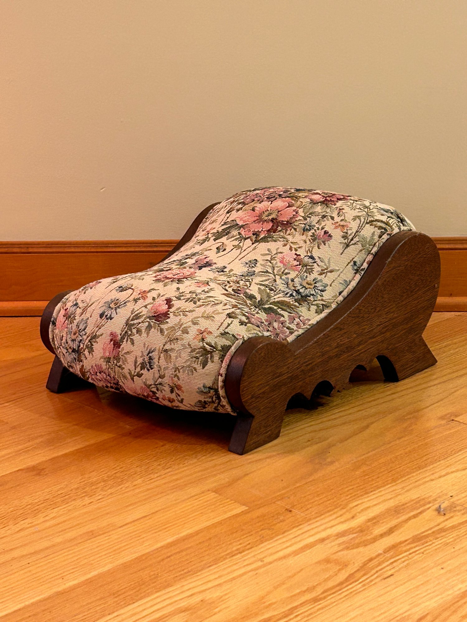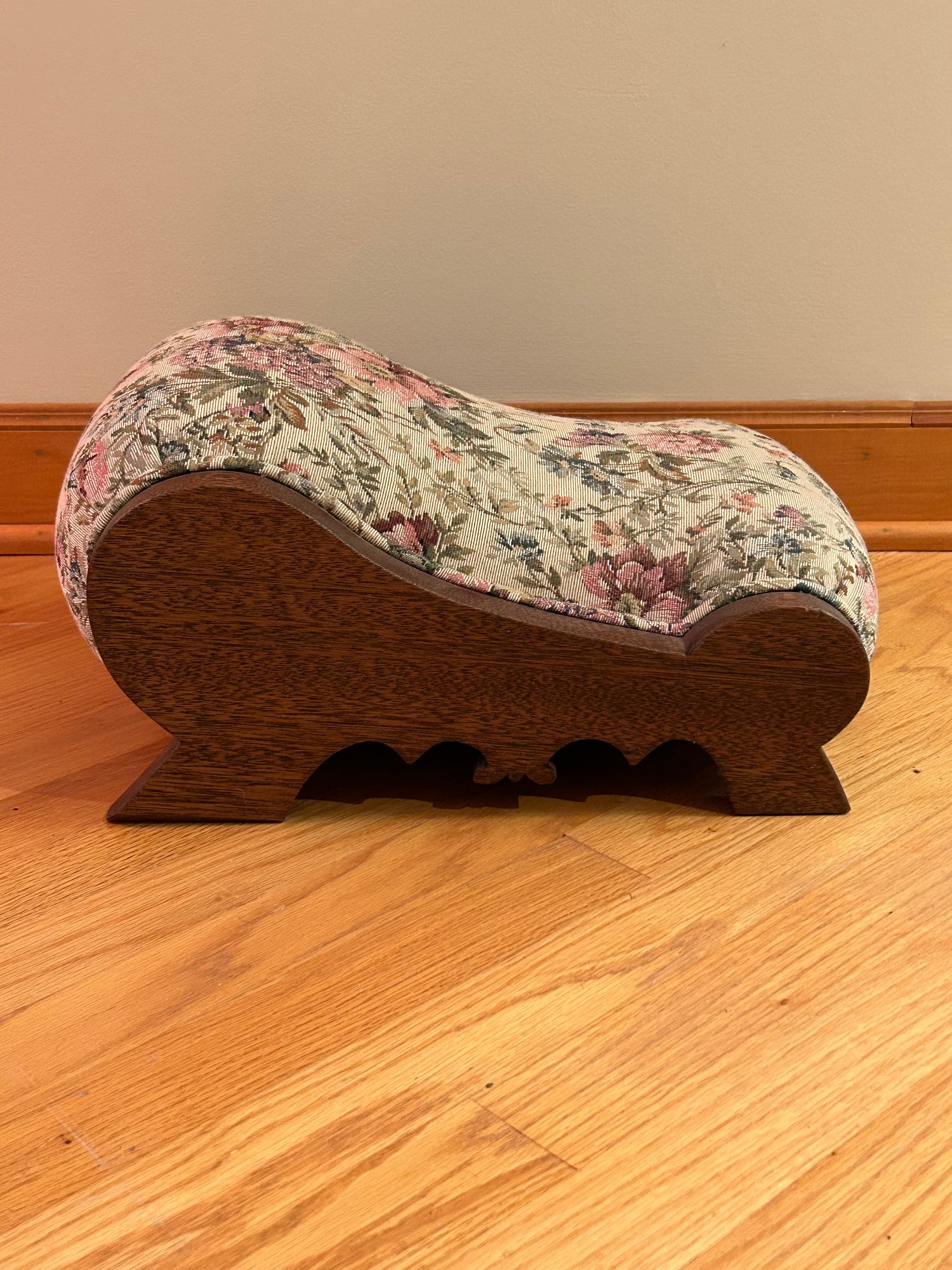 Antique Oak gout stool, newly upholstered. 7x16x12.5 inches